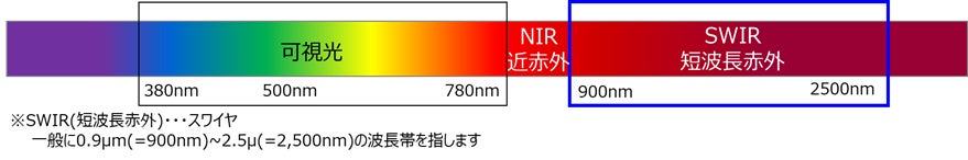 SWIRは、可視光では見分けにくい物質の違いを「吸収性・反射特性」に基づいて識別できます。水分を黒く映す特性を持ち、霧・煙・粉塵などの影響を受けにくいため、悪環境下でも安定したセンシングが可能です。これにより、従来のカメラでは難しかった液体検知や異物検査、素材識別を実現します。