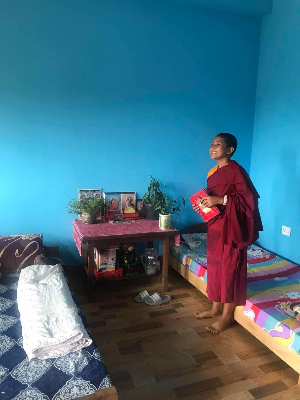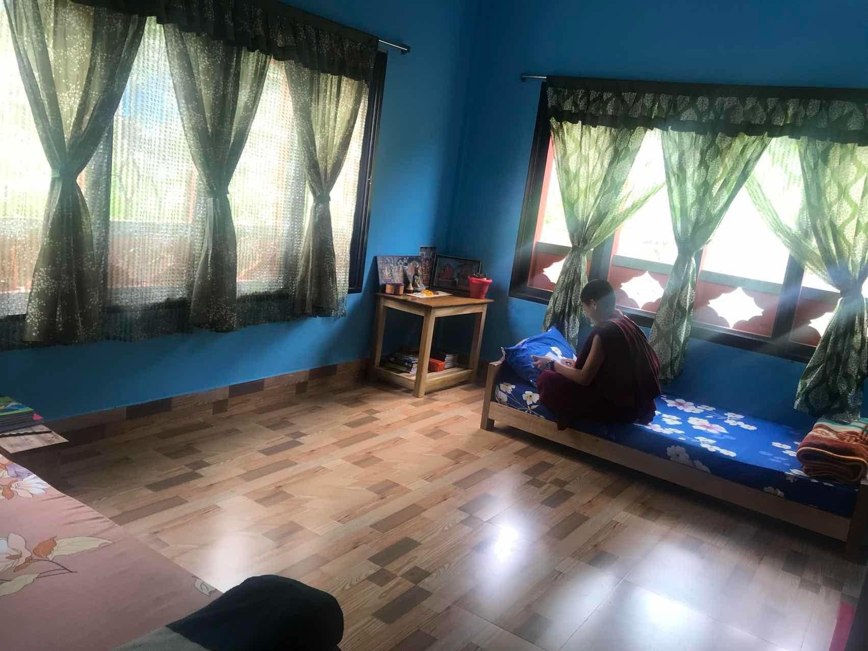 本施設は児童の居室、トイレやシャワー、食堂など一通りの生活を営む設備を備えており、最大で80名の女児・女性が生活可能となっています。2024年10月現在の入居者数は35名で、6歳から40歳までの女児・女性が生活しています。施設は山の中腹にある仏教寺院の敷地内に配置され、首都Thimphuから施設までの道のりは平たんなものではありませんが、少女たちは僧侶に守られ安心して生活することができます。極彩色が華やかな施設外観とは対照的に、児童の居室はすっきりと整えられ、大きな窓からは明るい陽が入ります。