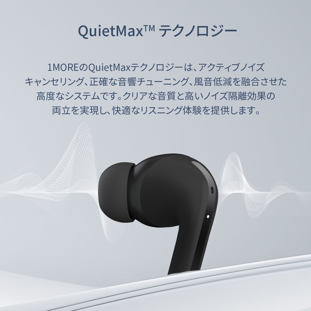 1MORE独自のQuietMax技術を採用したアクティブノイズキャンセリング(ANC)機能はクリアな音質と優れたノイズ遮断効果を実現します。