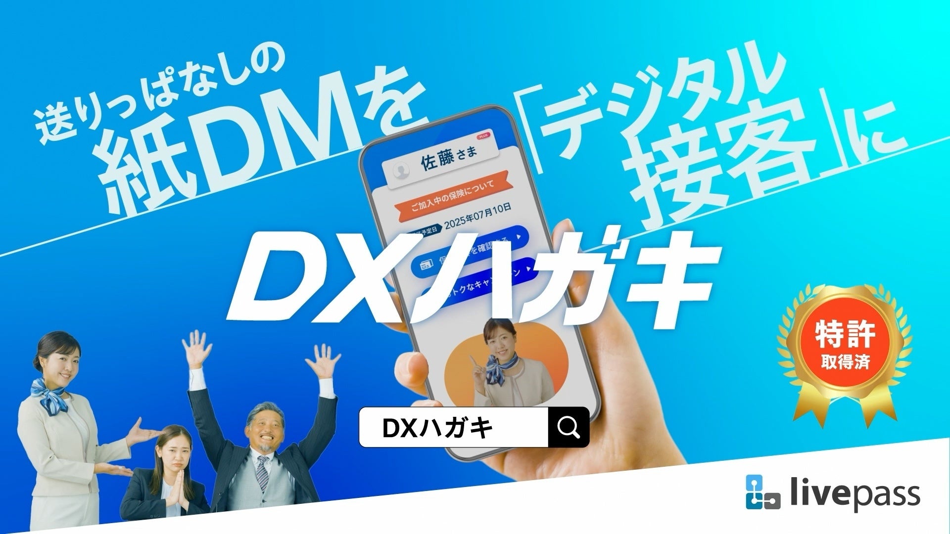 livepass株式会社(本社:東京都港区六本木、代表取締役CEO:中村旭宏、以下、livepass)は、独自の特許技術をベースにした企業ー生活者のパーソナライズ・コミュニケーションソリューション「DXハガキ」のCMを公開いたしました。