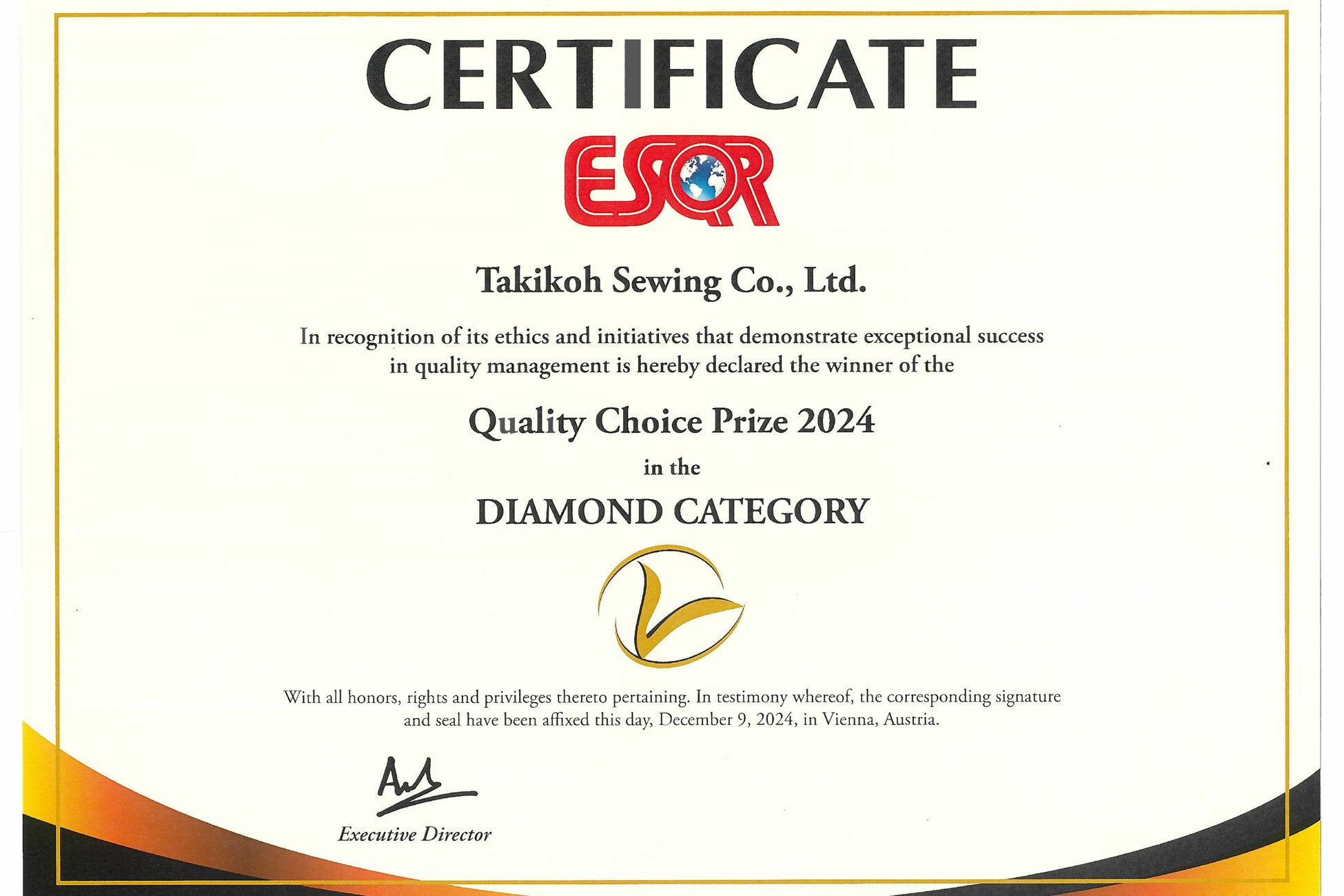 ESQR「Quality Choice Prize 2024」は、ヨーロッパ・アジア・南北アメリカ・オーストラリア・アフリカから選ばれた企業、組織、行政機関の品質管理における改善努力や優れた成果を称えて表彰されるもので、写真は2024年12月9日にオーストリア・ウィーンで授賞式を開催した。