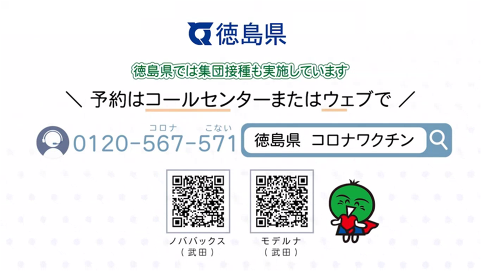 徳島県では、すべての大規模集団接種会場で、「武田/モデルナ社製ワクチン」による「3回目接種」、「4回目接種」を実施しており、「予約なし」での接種も可能です。