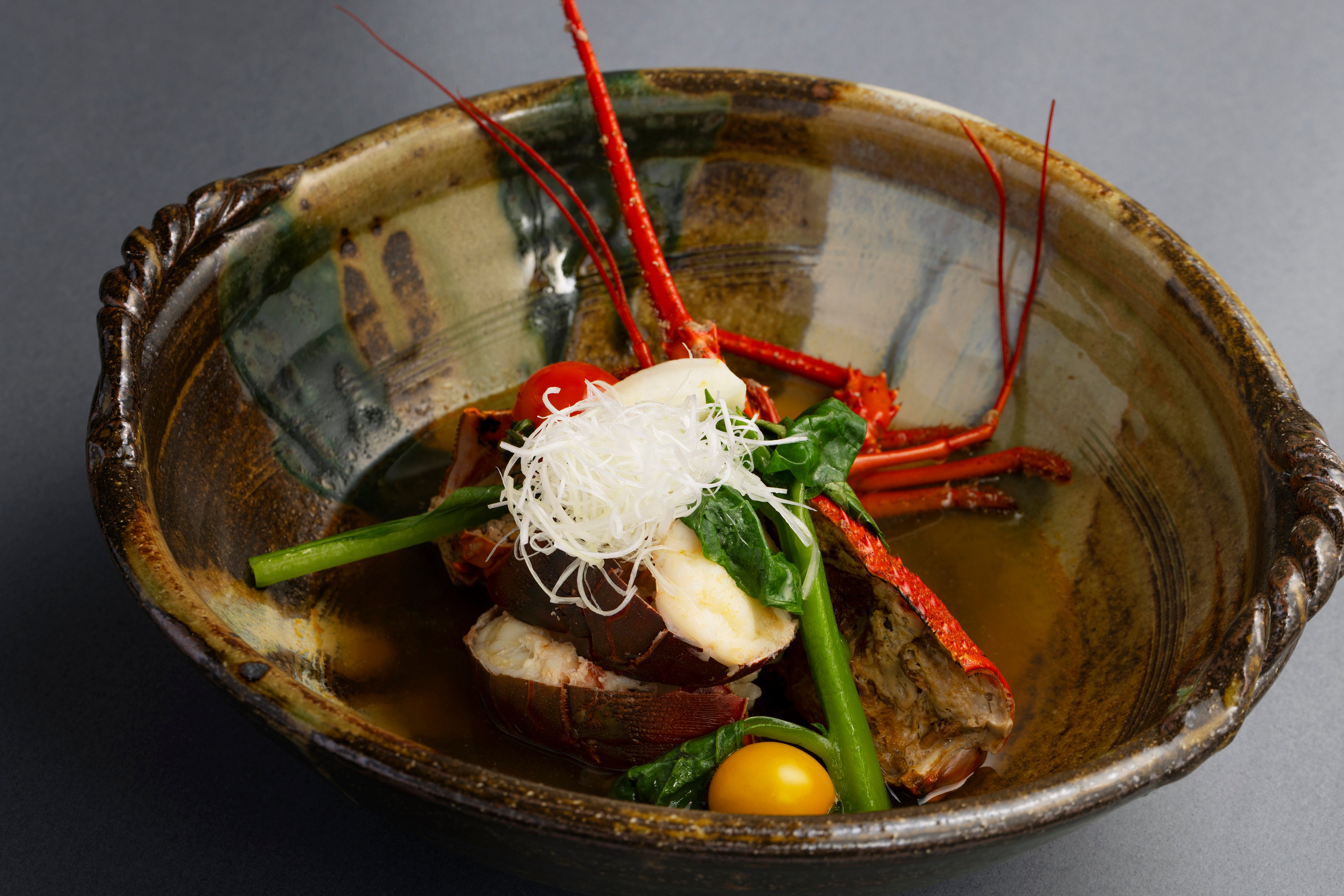 一人一尾を贅沢に使用した伊勢海老、戸田産の鮑や原木椎茸、駿河湾でしか獲れない希少な高足ガニなど、この土地ならではの食材を、和食をベースにした独創的な調理法で仕上げます。素材の旨味や滋味、四季折々の味覚を存分に活かした料理の数々を、富士山を眺める絶景の個室にてお愉しみいただけます。