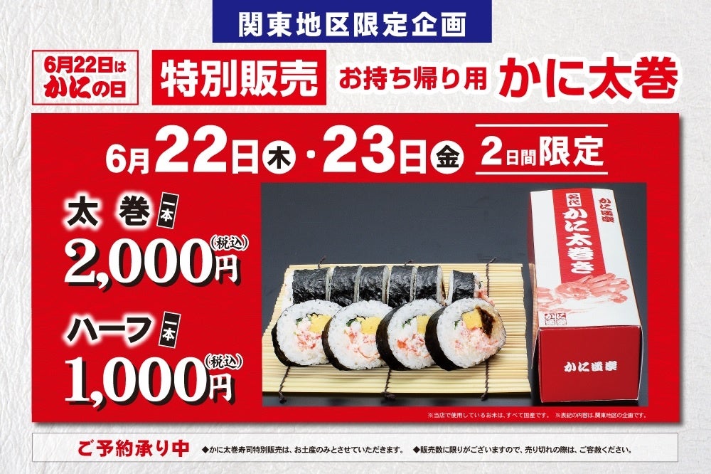 更に関東地区限定企画「かに太巻特別販売」を6月22日、23日の2日間限りの特別販売