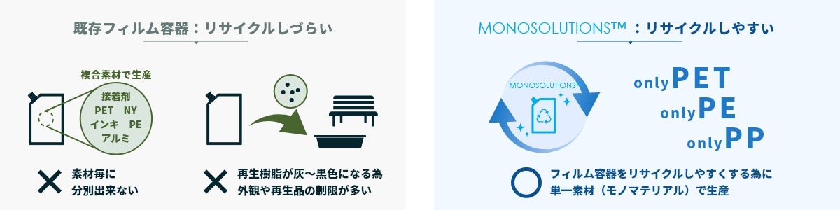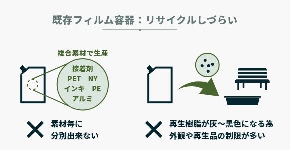 つめかえパウチのプラスチックフィルムを単一化、使用後も資源としてリサイクルされやすい