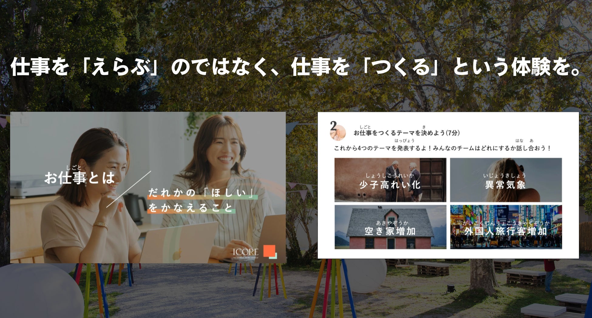 現在は、キャリアスクールでの仕事づくりのノウハウを活かし、子ども向け事業ICORE KIDSも運営しています。