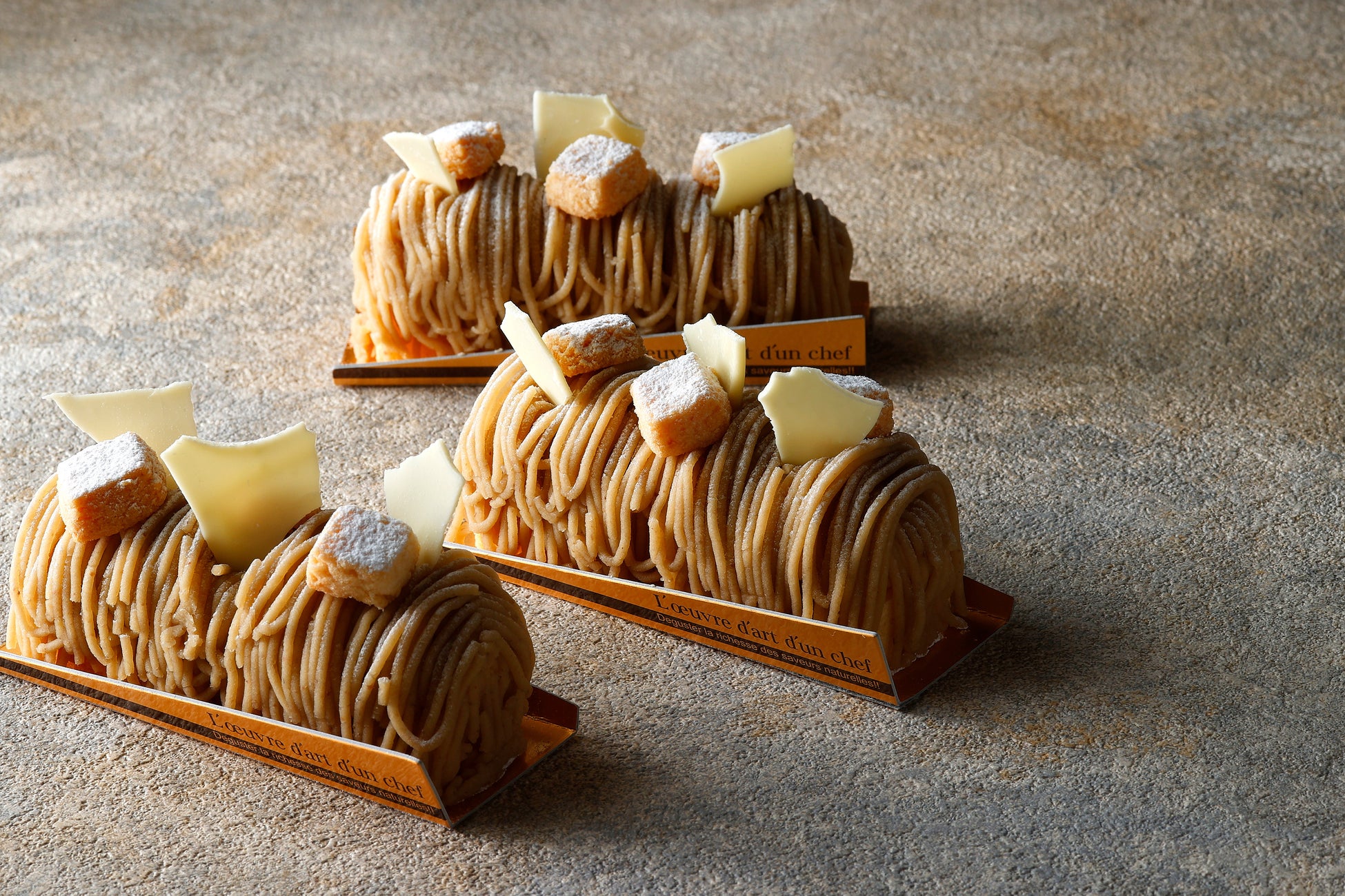 笠間産新栗は、特長である香りをお楽しみいただけるように「モンブラン」と「テリーヌ」、「ブリュレ」の3 つのスイーツに仕立て、フランス産マロンは「フィナンシェ」、スペイン産マロンはなめらかな「クレムー」でご提供します。セイボリーでも栗を用い、クリーミーなスープに仕立てた「栗のブルテ」、フロマージュブランと組み合わせた「栗のガレット」をご提供します。