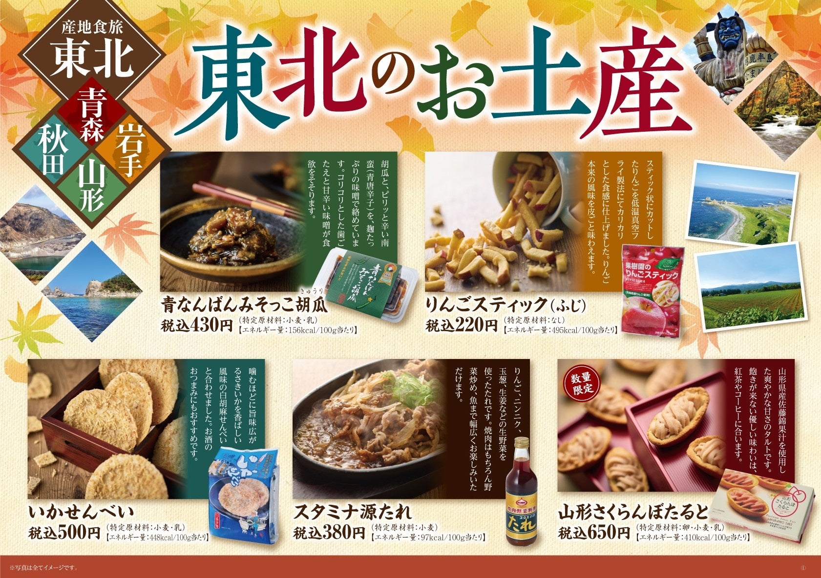〜東北の海の幸、山の幸を使用した東北天ざるそば、岩手かもとせりそば、バラ焼きセットなど東北の食材が味わえる商品を11/1~12/15の期間限定で販売。〜