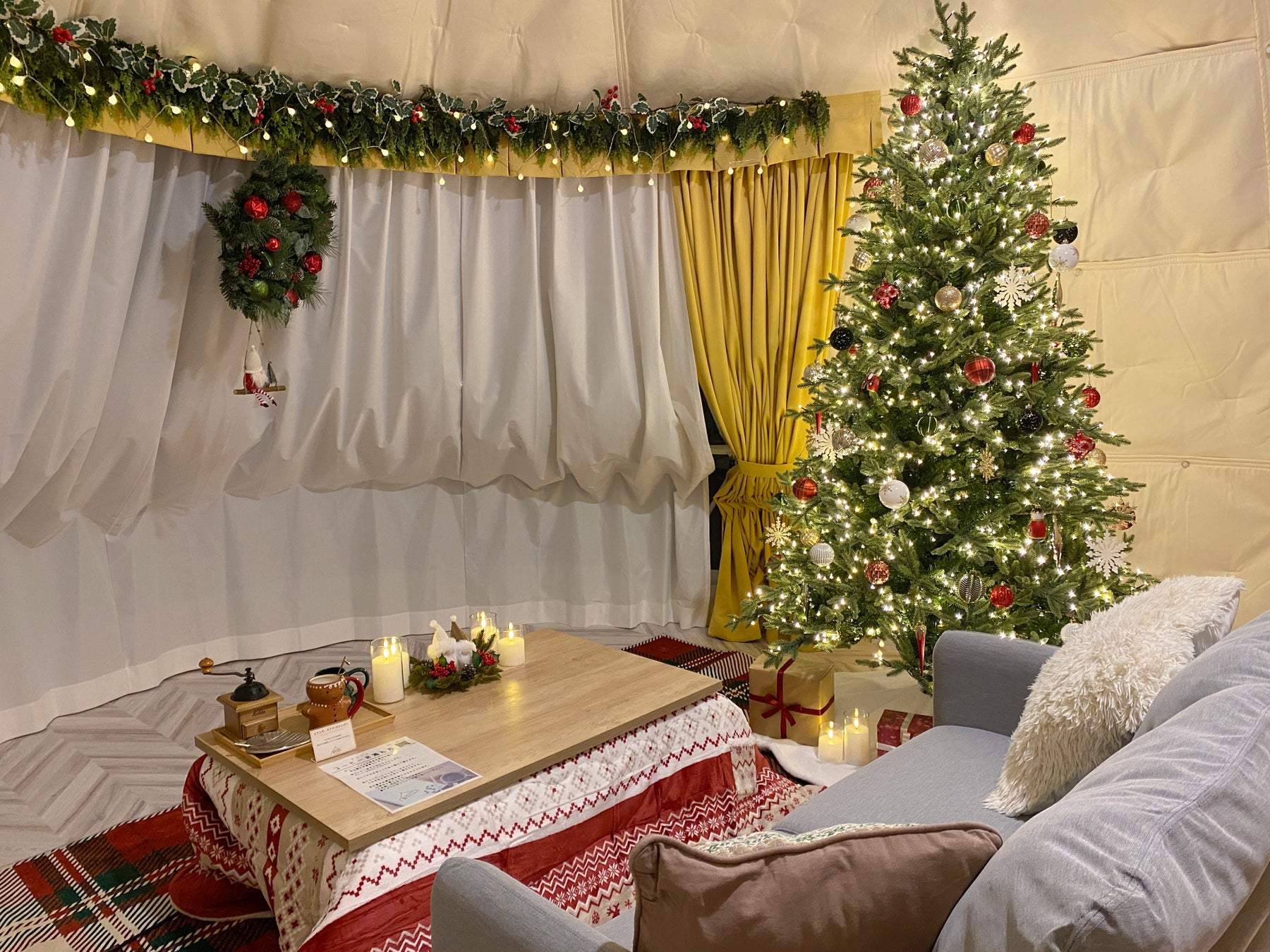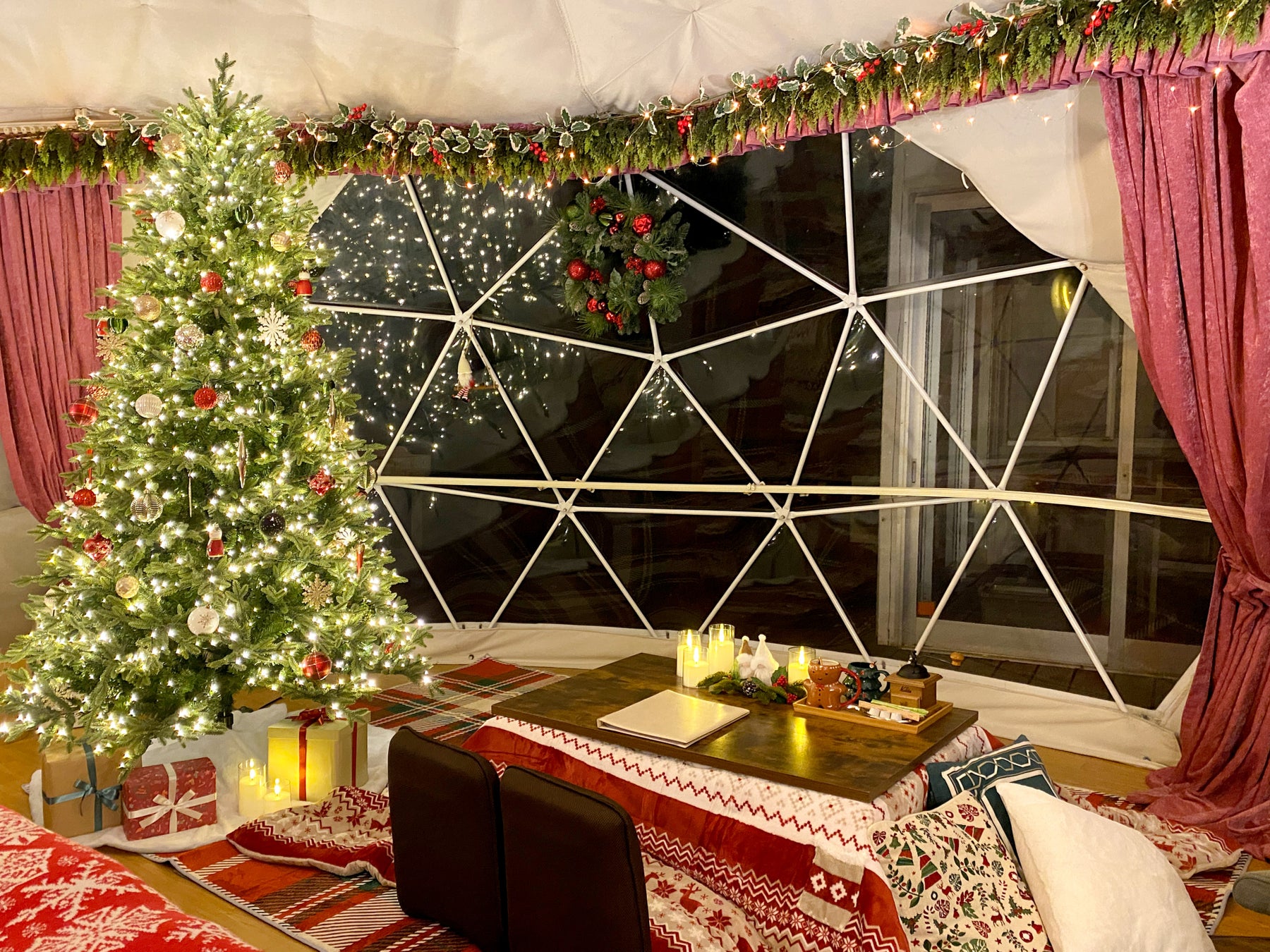 2025年12月1日〜12月25日の期間、新オーバルドームテントとドームテントの一部を「クリスマスデコレーションルーム」仕様でご用意いたしました。