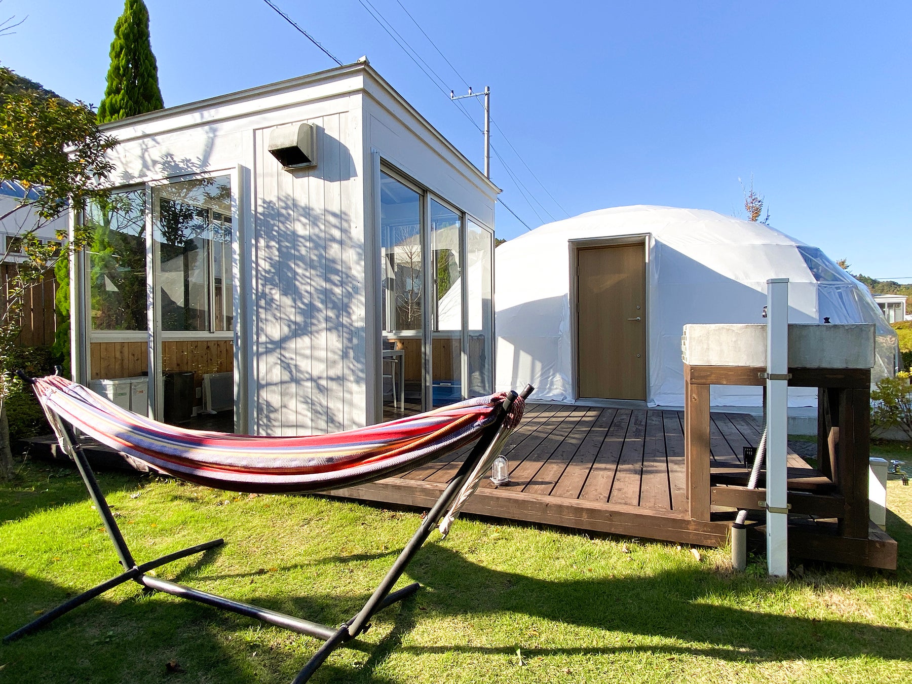 伊豆の自然に包まれた、星空と温泉のグランピングリゾート。お部屋はドームテントとオーバルドームテントを用意しており、ペットと一緒に泊まれるお部屋もあります。