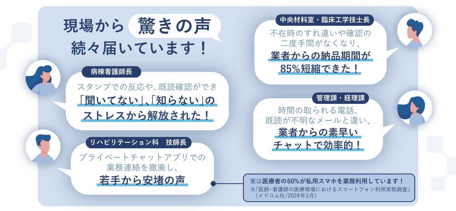 「見積もりやカタログの送付など、病院の方と時間や顔をあわせられなくても送れるようになった。しかも既読までわかる」