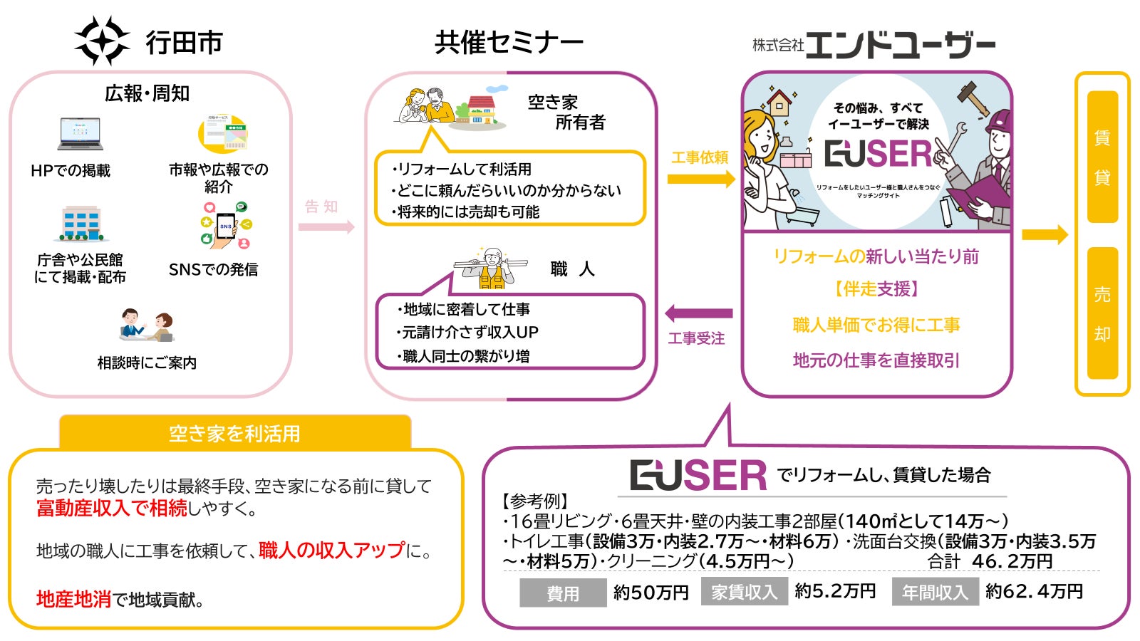 当社が運営している、職人に直接頼めるリフォームのマッチングサイト「EUSER」を通じて、社会問題となっている空き家問題を自治体との連携で解決することが非常に重要だと考えています。