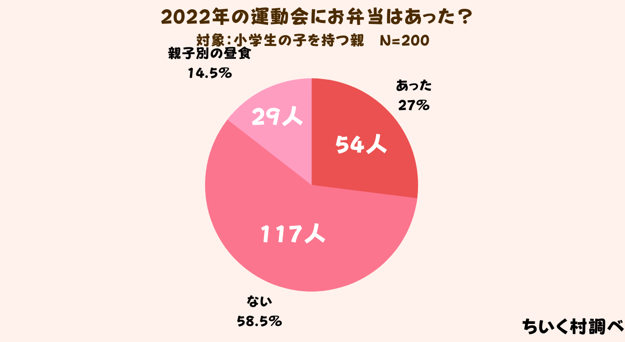 2022年の運動会でお弁当はあったのか?(ある予定なのか?)を聞いてみたところ、「ない」と答えた人が58.5%でした。