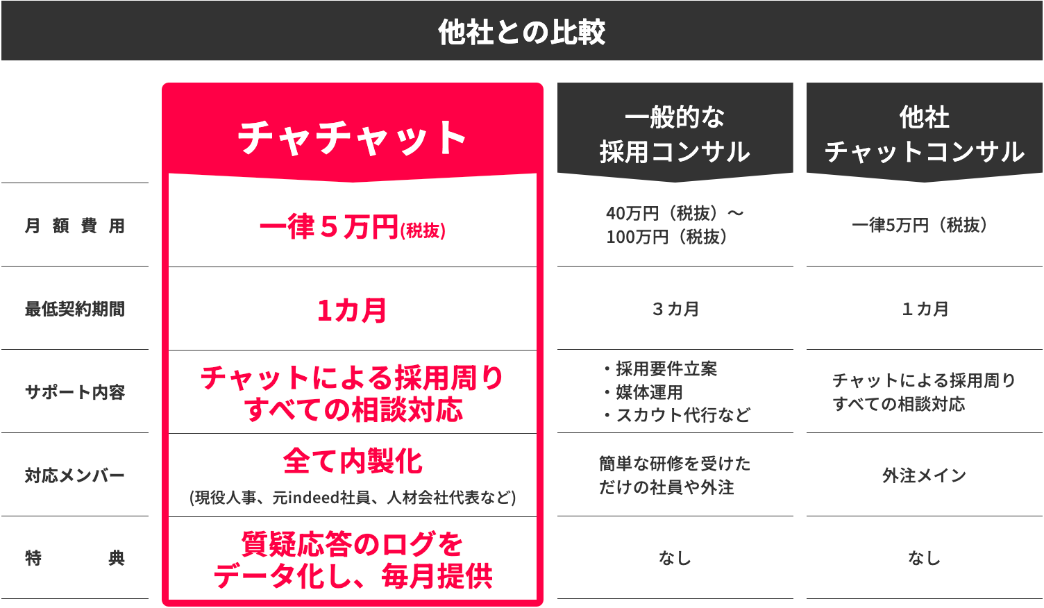 ■月額制チャット型採用コンサル「チャチャット」の特徴