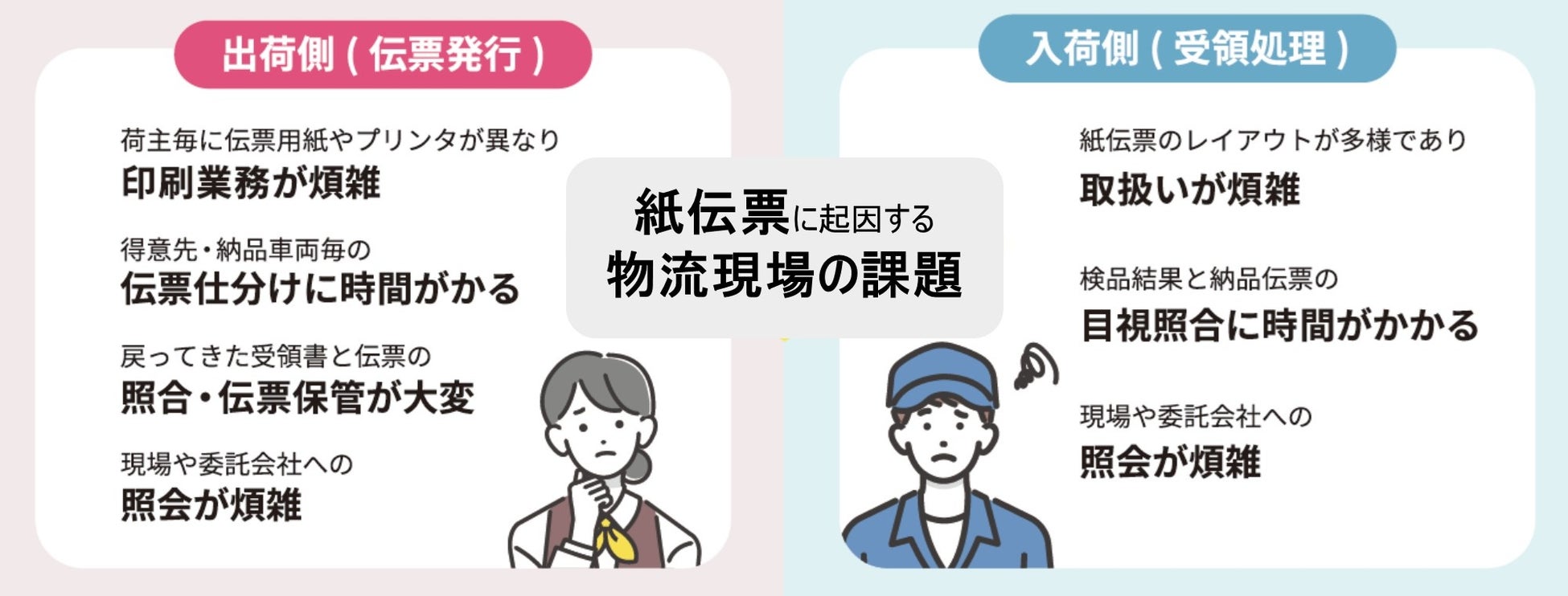 また、受領書の回収、荷主への返送や保管、後日確認が必要となった場合に対象の伝票を検索する作業も現場の負荷になっています。
