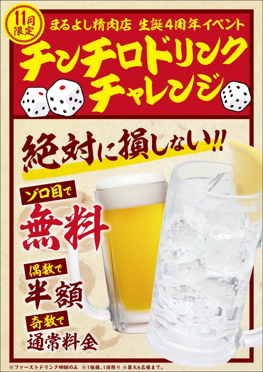 焼肉ホルモンまるよし精肉店(https://maruyoshi-seiniku.com)にて、『誕生4周年祭』を2024年11月に実施致します。