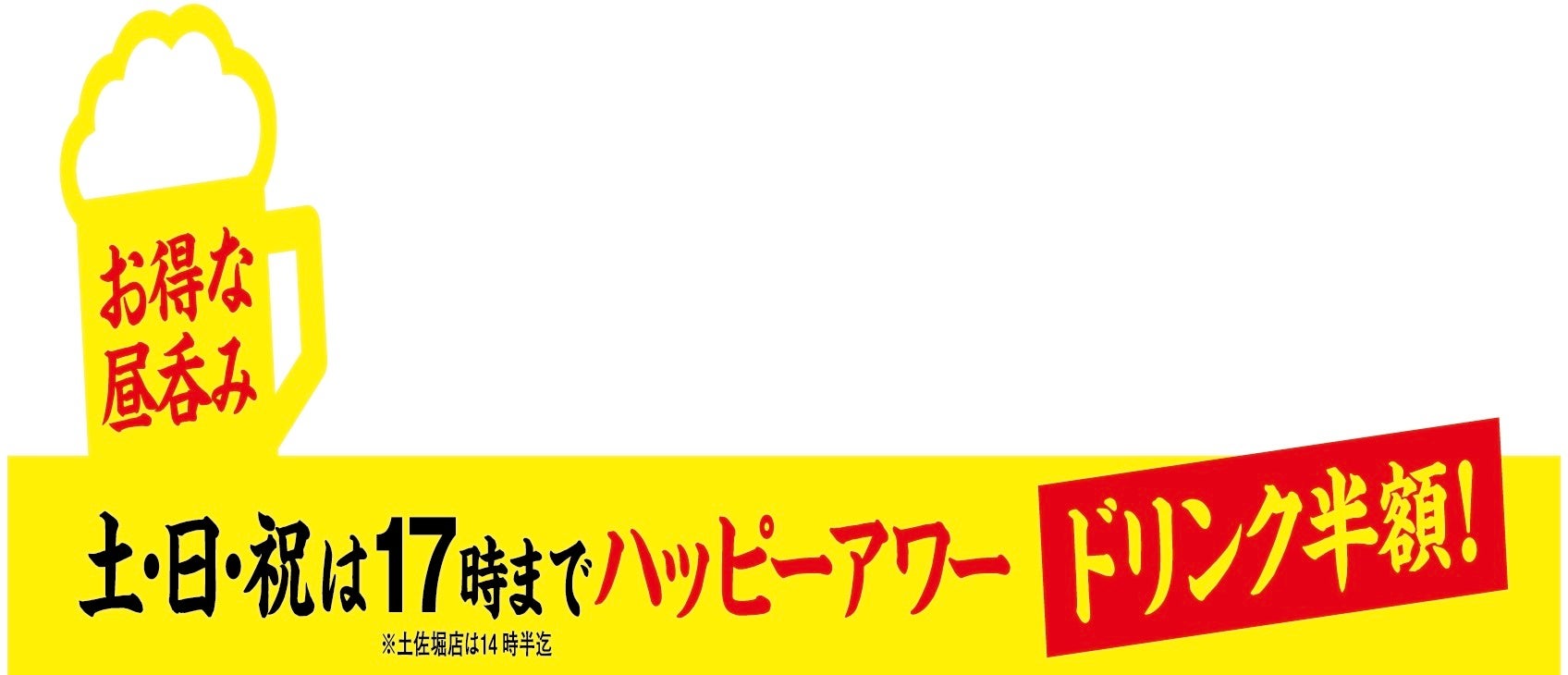 【土日祝限定】ドリンク半額!17時までハッピーアワー