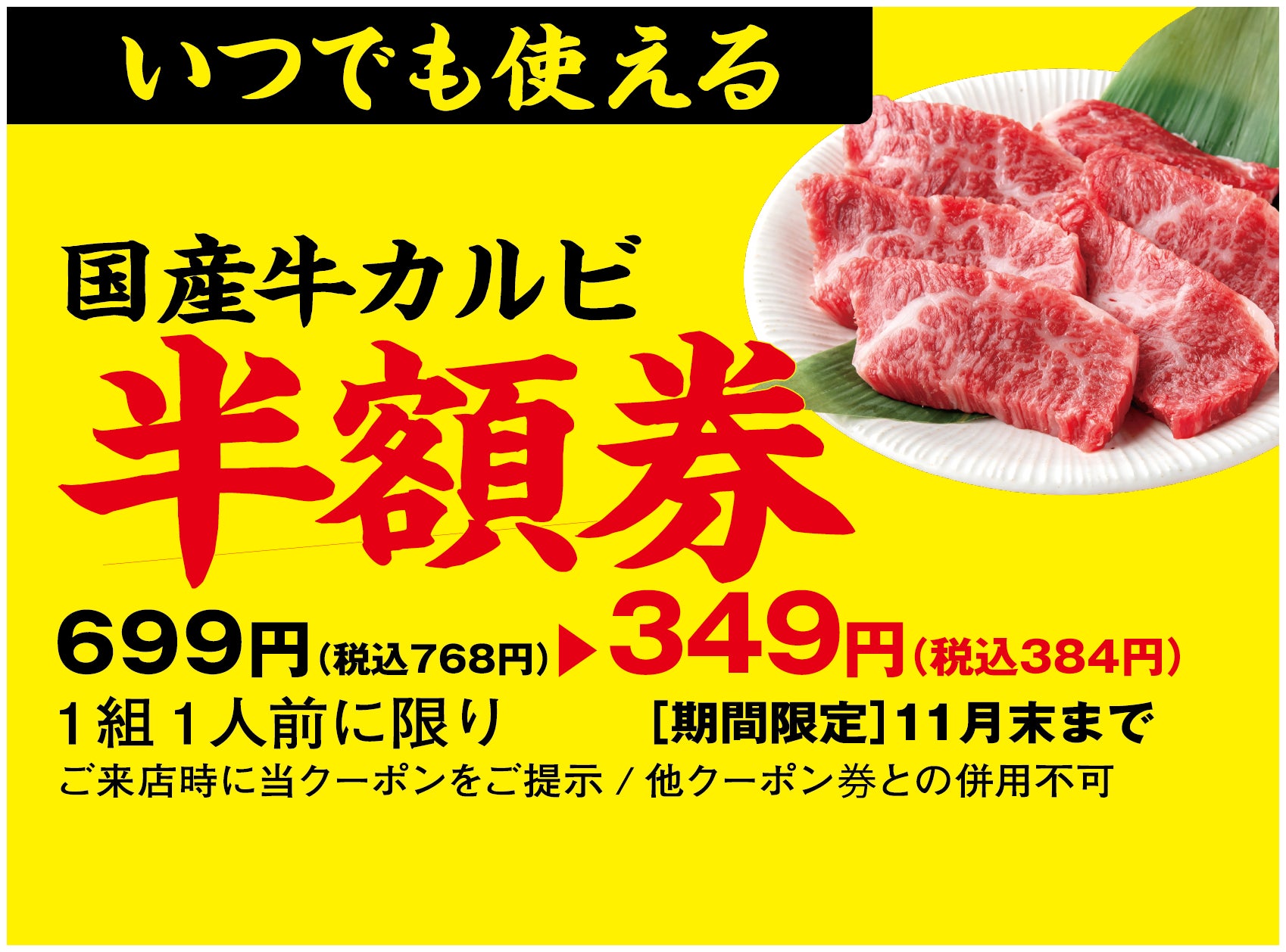 【いつでも使える】国産牛カルビ半額 ¥699 → ¥349
