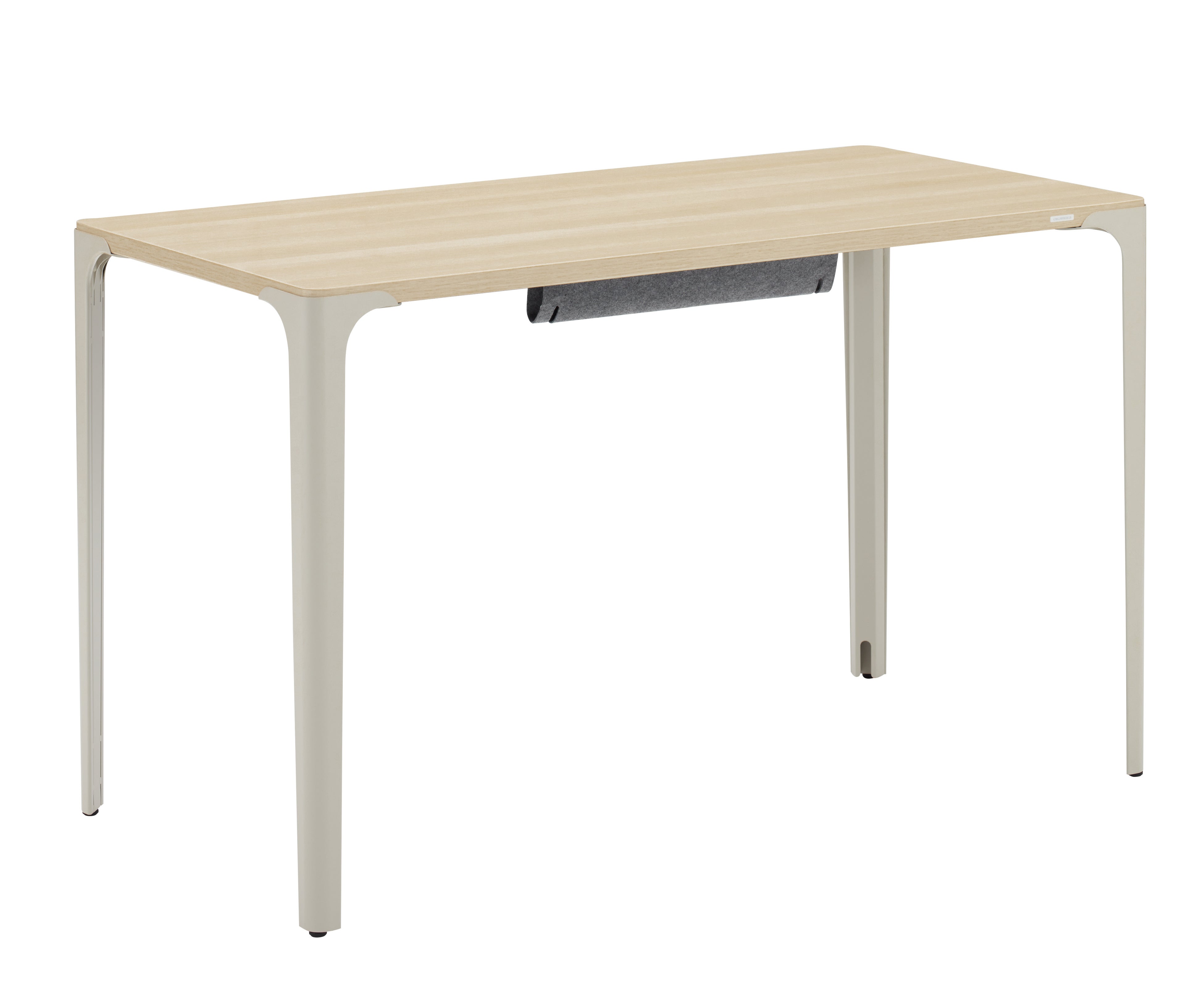 はたらき心地を追求した機能とデザイン、組み立てやすいシンプル構造で、安全性に配慮した丸みのある形状のデスクです。天板は抗菌メラミン化粧板を使用し、メンテナンス性に優れています。丸みのある脚で天板の四隅を包み込み、子どもの頭が天板の角にぶつかりにくくしています。配線受けは柔らかいフェルトを使用し、脚に沿って配線をきれいに収納できる脚カバー付きになっており、子どもがコードに引っ掛かる心配がなく、机の下に潜ってぶつかっても安全です。