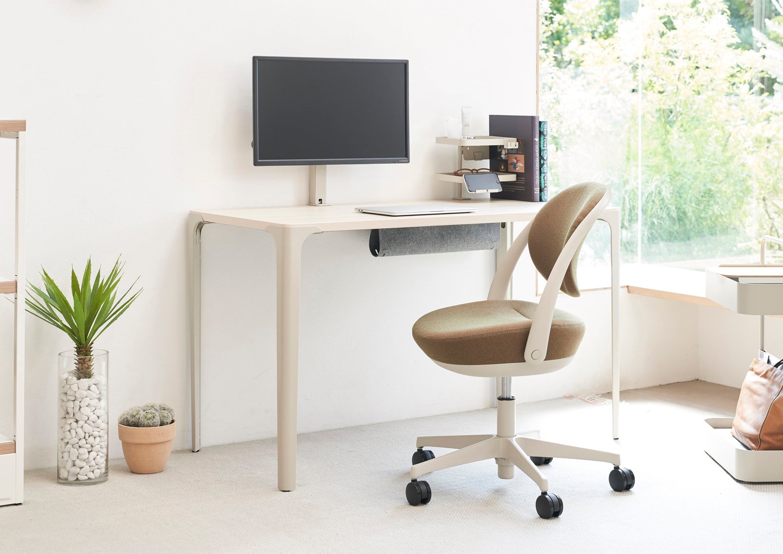 「Parabel」チェアと「Parabel」デスクは、機能性と安全性を兼ね備えた、家のインテリアになじむナチュラルなデザインの在宅ワーク向けファニチュアです。在宅ワークをする機会が増え、家も働く場としての役割を持つようになりました。書斎など働く環境が整った場所ではなくリビングやダイニングの一角で仕事をするケースも多く、リビングやダイニングは子どもと一緒に過ごす場でもあるため、在宅ワーク向けの家具は、機能性やデザインだけでなく安全性が重要です。