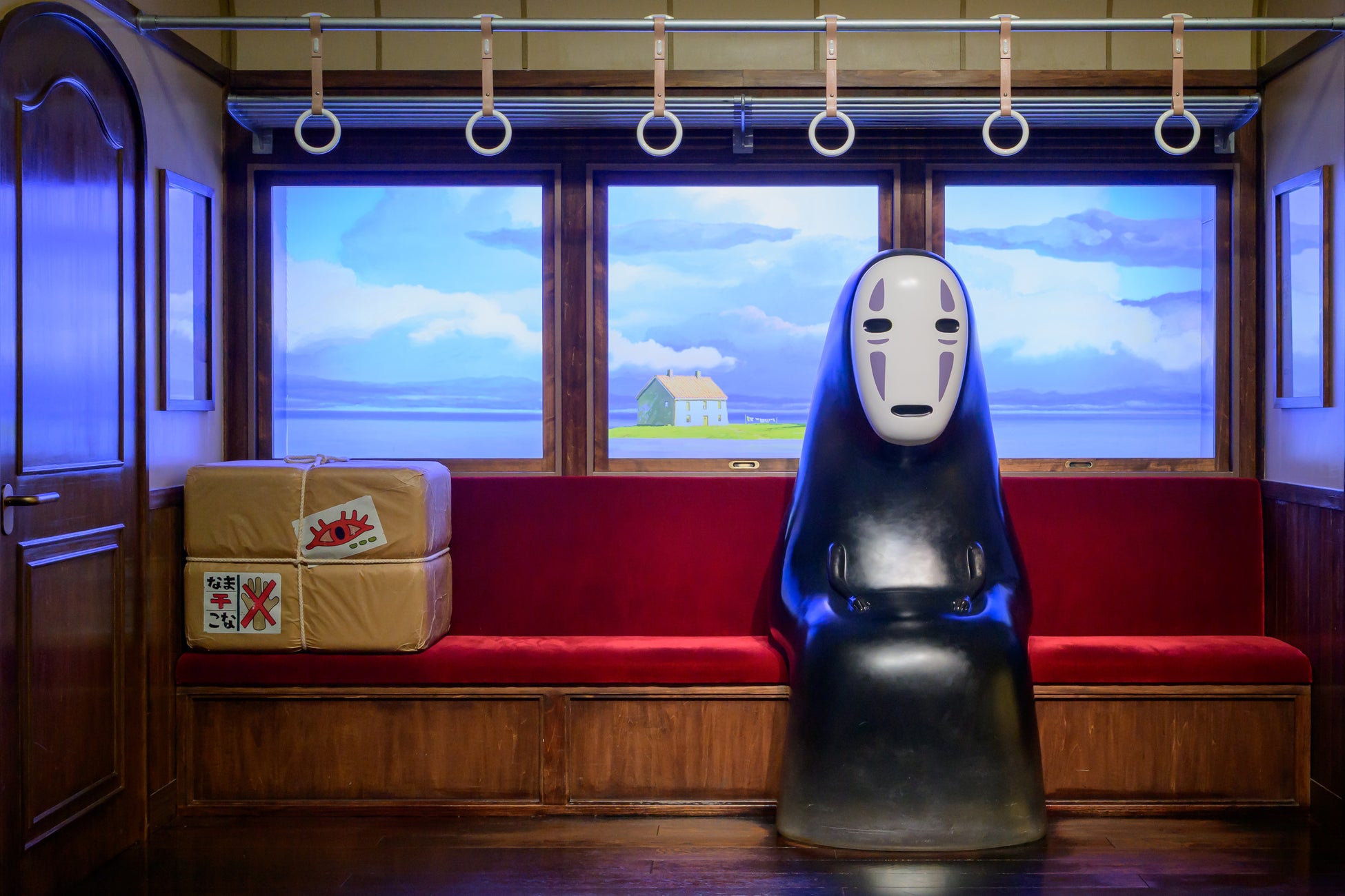 さらに、ジブリパークを体感できる展示も。ジブリの大倉庫で開催中の企画展示「ジブリのなりきり名場面展」からは『千と千尋の神隠し』の名シーンを再現します。カオナシの隣に座り、主人公・千尋の気分を味わえます。