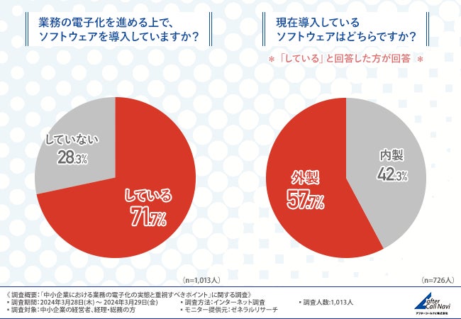 「業務の電子化を進める上で、ソフトウェアを導入していますか?」と質問したところ、約7割の方が『している(71.7%)』と回答しました。