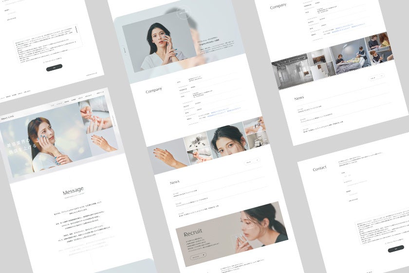 弊社のミッションである「美容業界の価値を上げる」という想いを、トップページをはじめとする各コンテンツで分かりやすく表現しました。特に、アイラッシュやネイルを通じてお客様へ感動体験を提供する「感動は、細部に宿る。」というコンセプトを、メッセージやビジュアルで具体的に紹介しています。