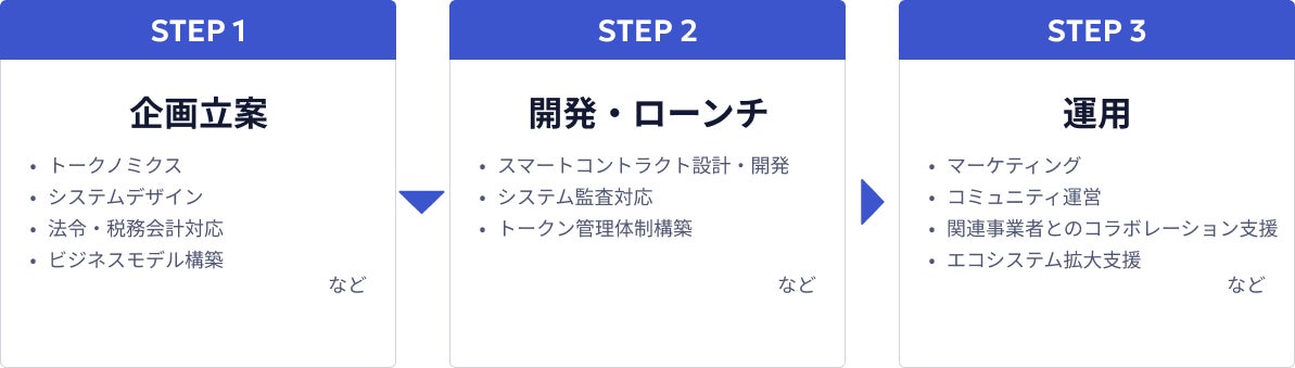トークンの設計・発行・上場を、技術と金融の両面から総合的にサポートしております。