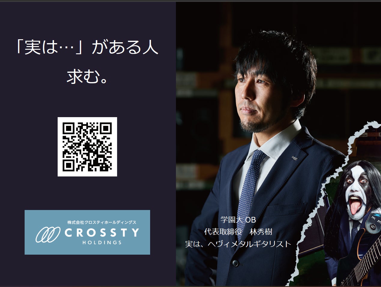 昨年の「AprilDream」では、重厚かつキャッチーなリフから展開されるヘヴィメタルをテーマに、社歌を創作するという大胆な試みを発表しました。まだ社歌を創るには至っておりませんが、まずは形から入るということで、代表取締役の林がヘヴィメタルメイクに挑戦。グループ企業の株式会社水研工業の倉庫で撮影を行い、その様子をWEBサイトやSNSで発信しました。また、その際に撮影した画像は、札幌市営地下鉄東豊線・学園前駅に駅看板広告として掲載、会社の認知度向上を目的として活用、新卒採用にも寄与しました。