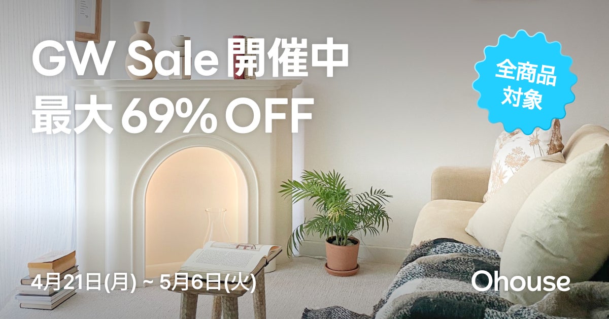 株式会社Bucketplace Japan(代表取締役:ゾン・セヒョン)は、韓国発のインテリア写真共有・ECアプリ「Ohouse(オーハウス)」の日本版アプリおよびWebサイトにて、全商品が最大69%OFFになるゴールデンウィークセールを開催中です。