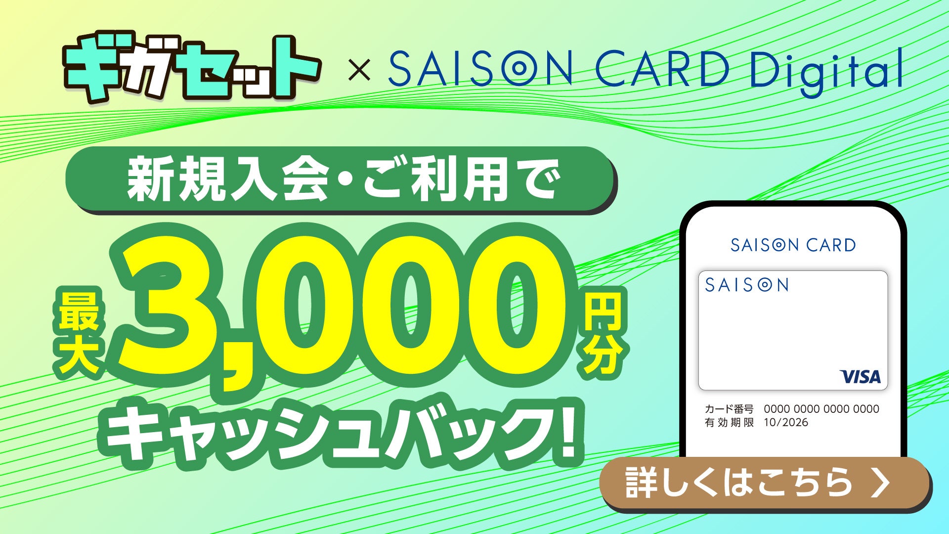 2023年12月26日より、モバイルルーター「ギガセット」と「SAISON CARD Digital」によるコラボキャンペーンがスタートいたしました。