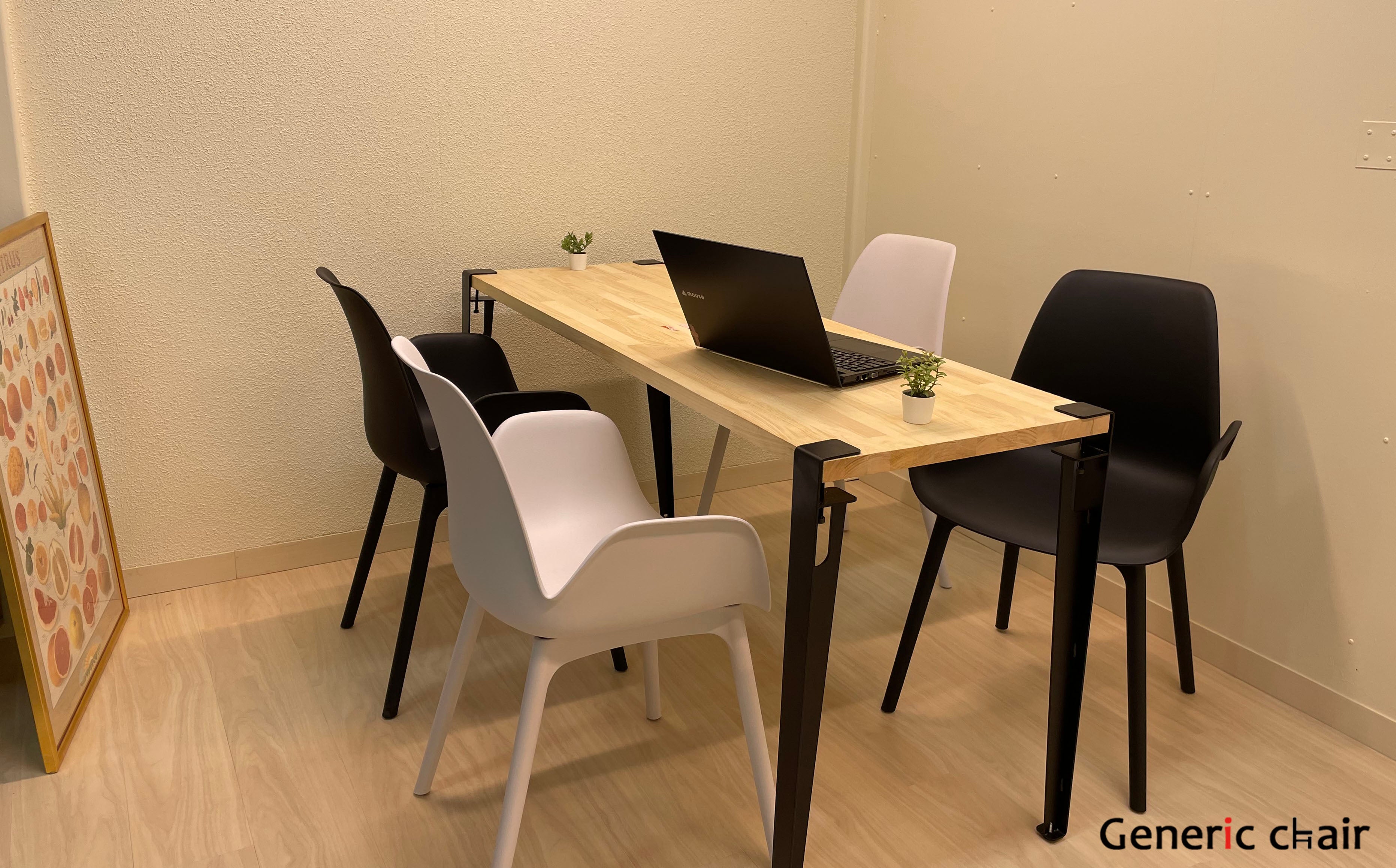 シンプルでカジュアルでもオフィスでも使用できる椅子。約6kgで会議などでの椅子移動も楽に可能。