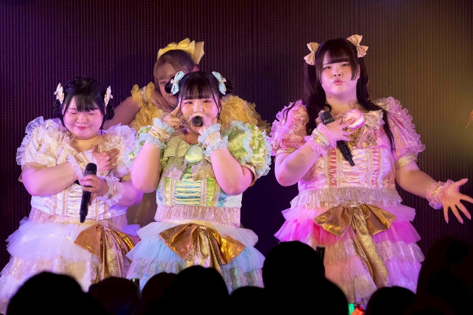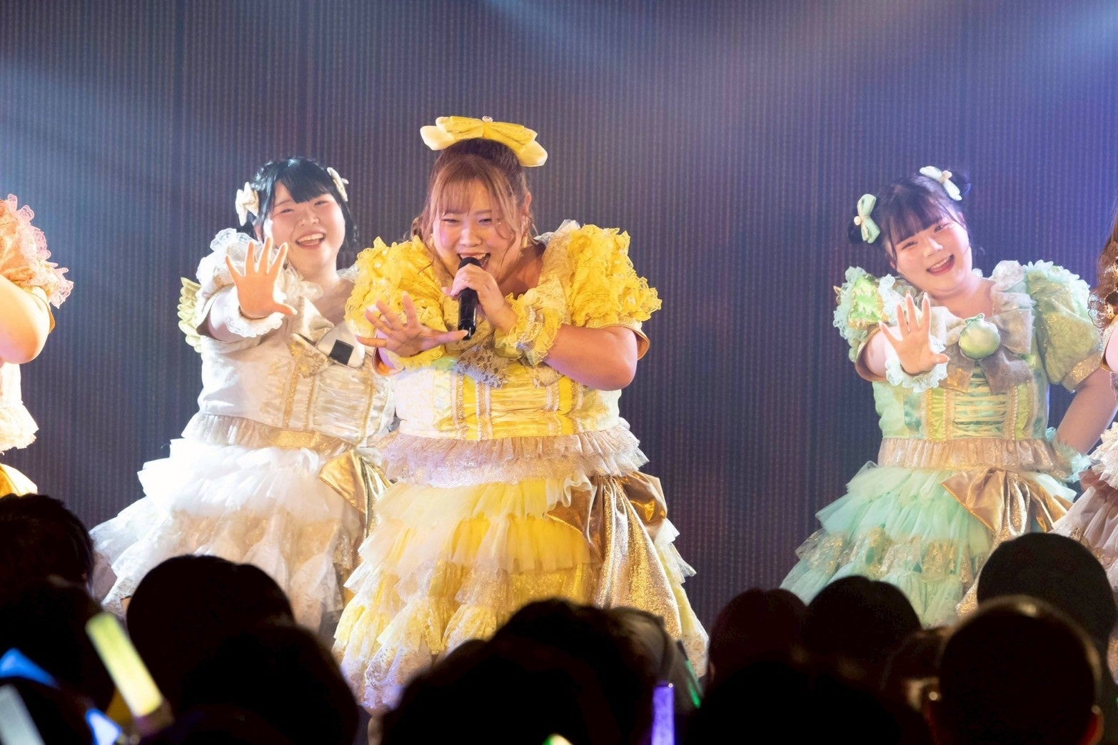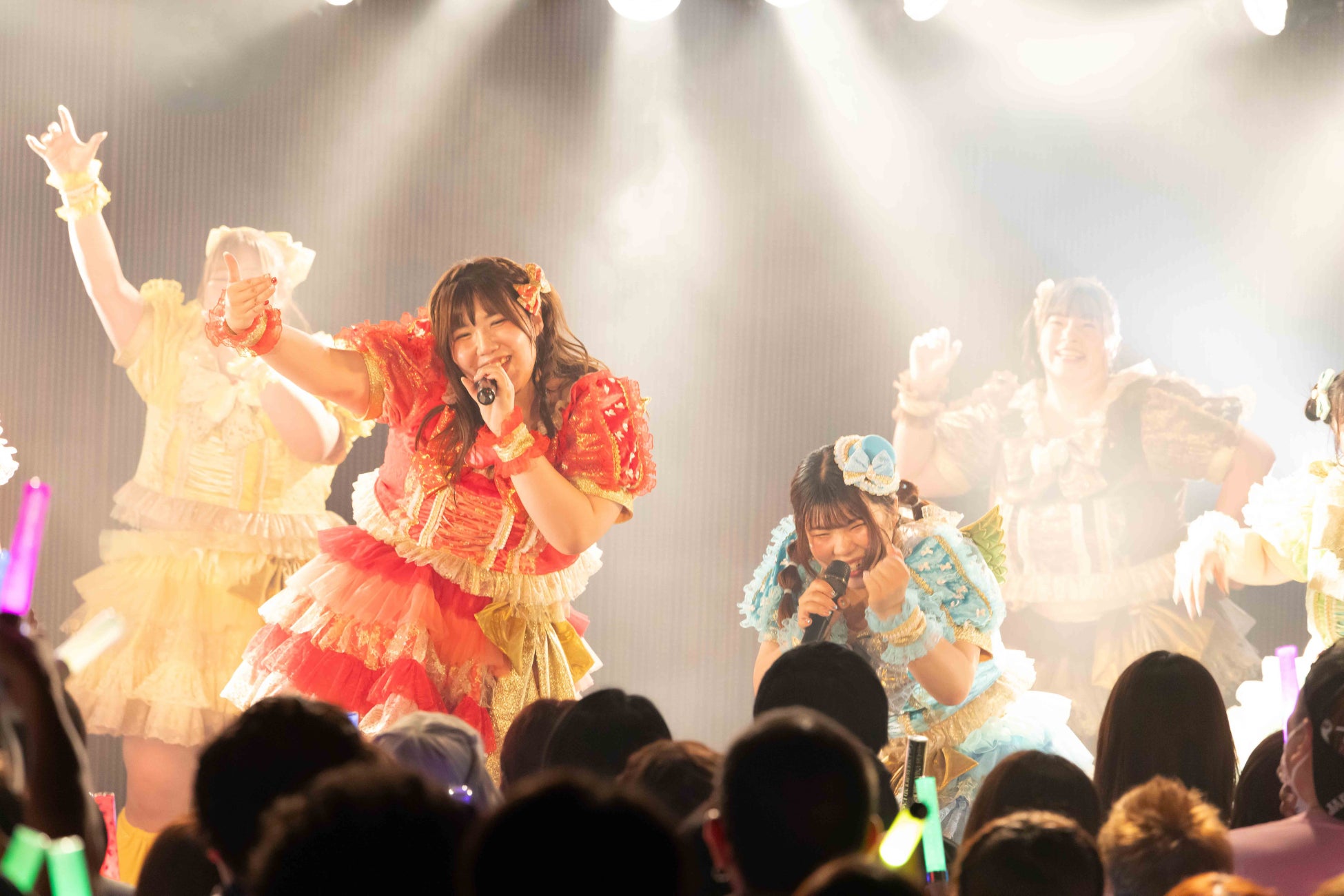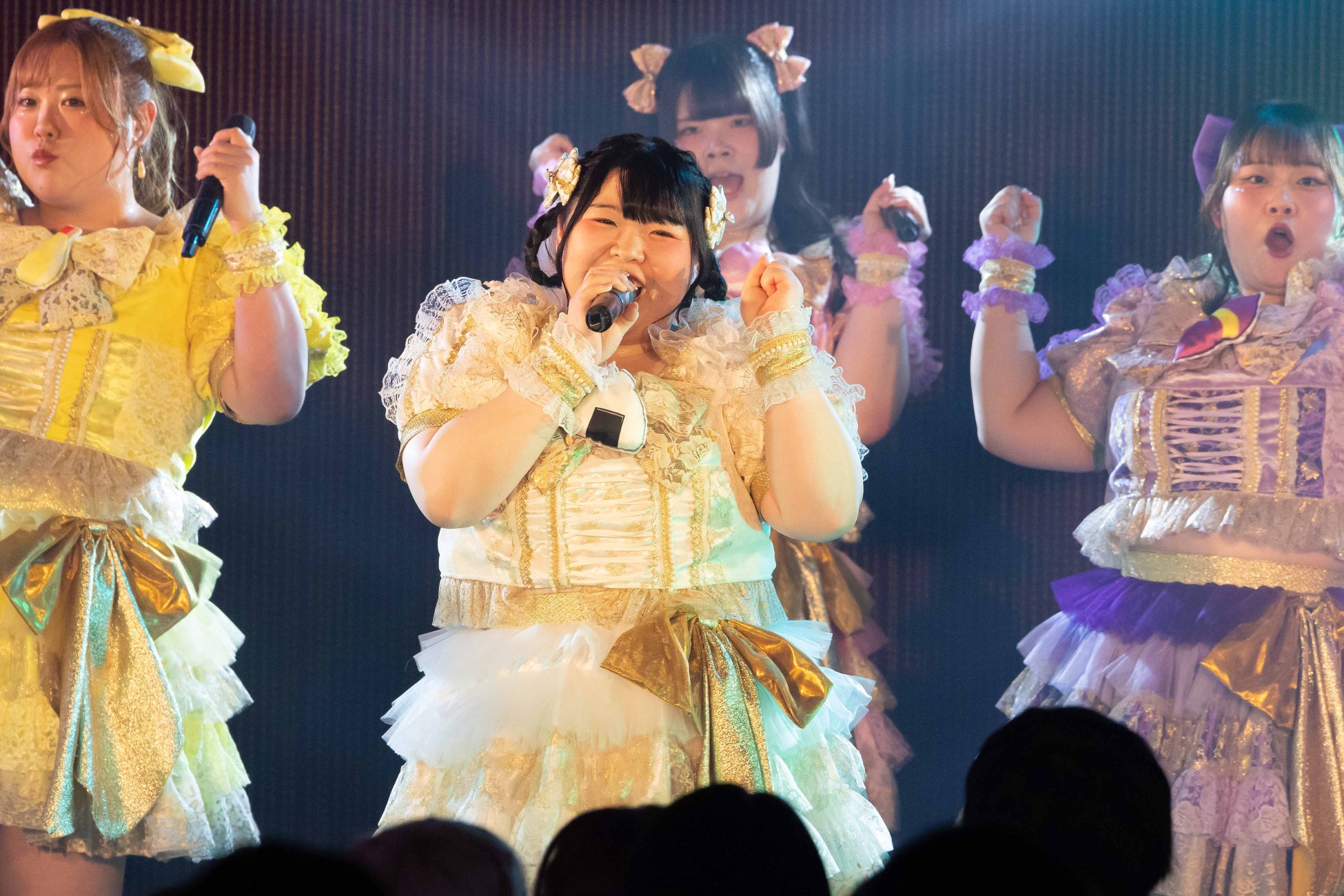 「ぐぅ〜!」と一際大きなお腹の音が鳴ったのかと思えば、実は『デリシャスDays』のイントロ。おデブ女子のいっぱい食べて幸せな毎日を歌ったアップテンポなナンバー。 続けて、「Summer Dive!!!』、『ナンデモ☆カンデモ』を畳みかけるように博テ会場を盛り上げた。