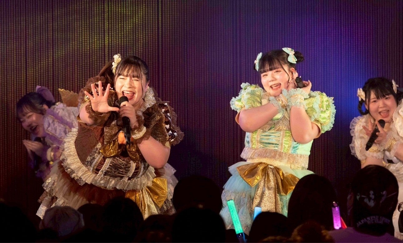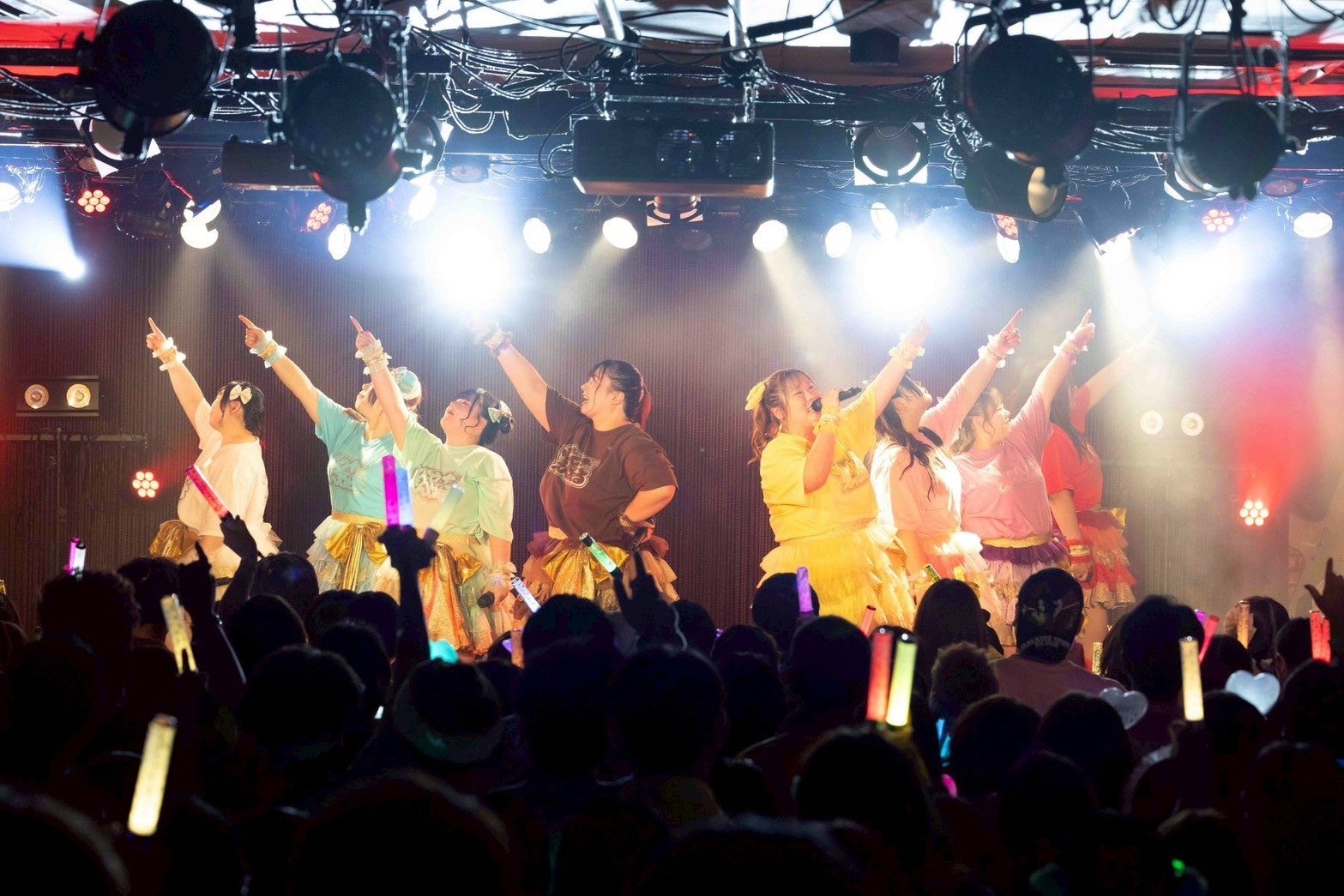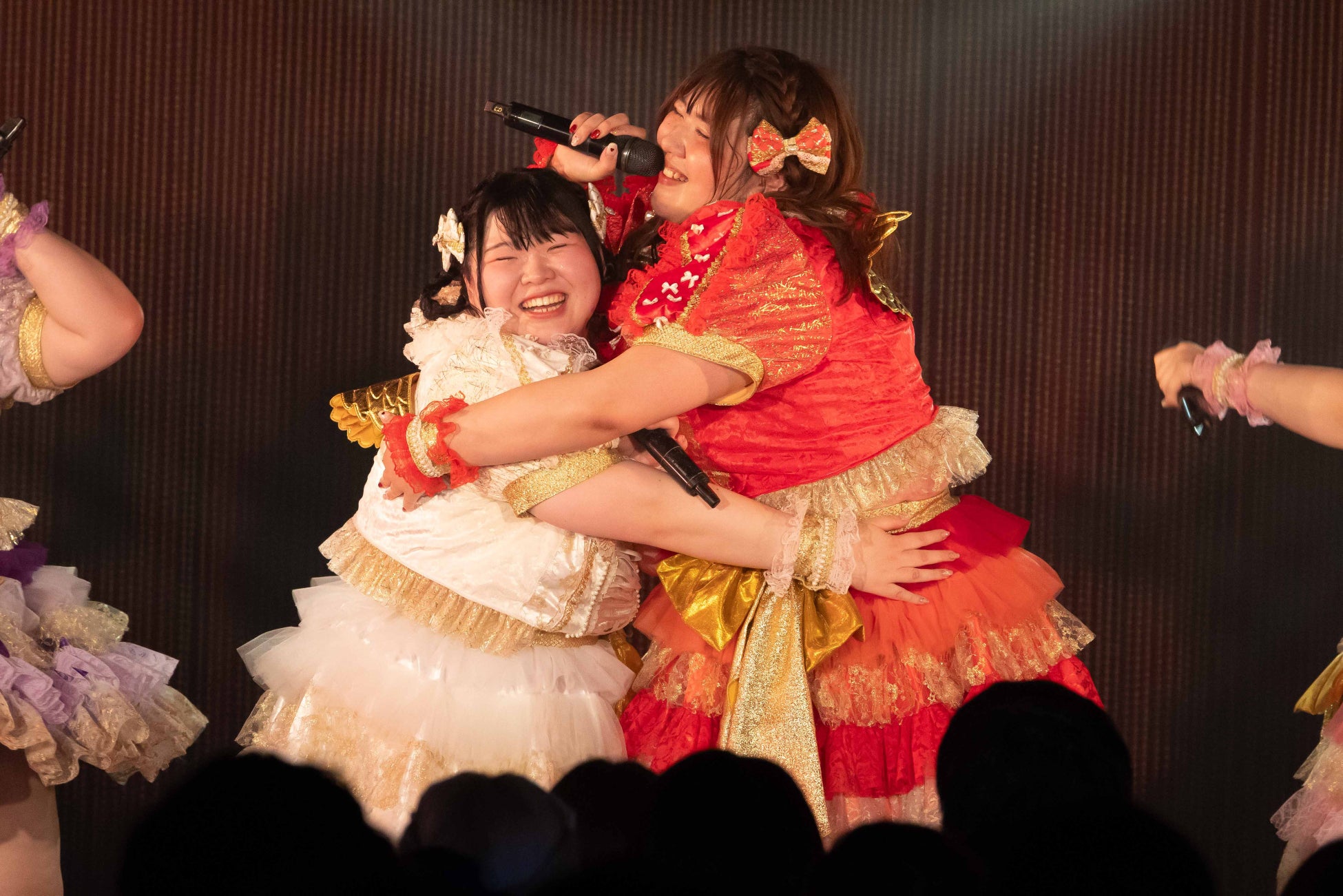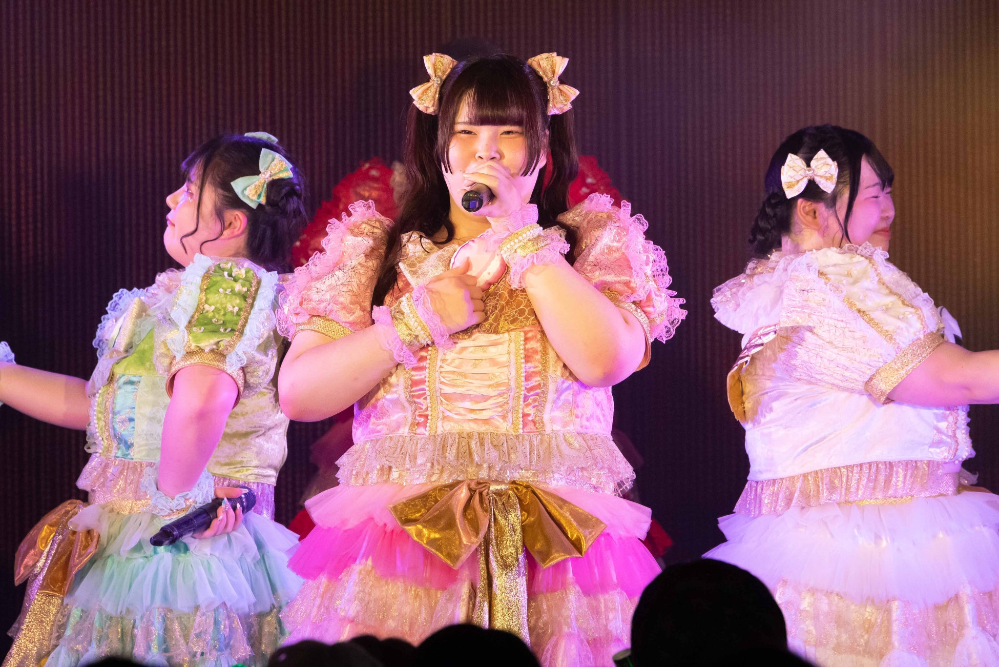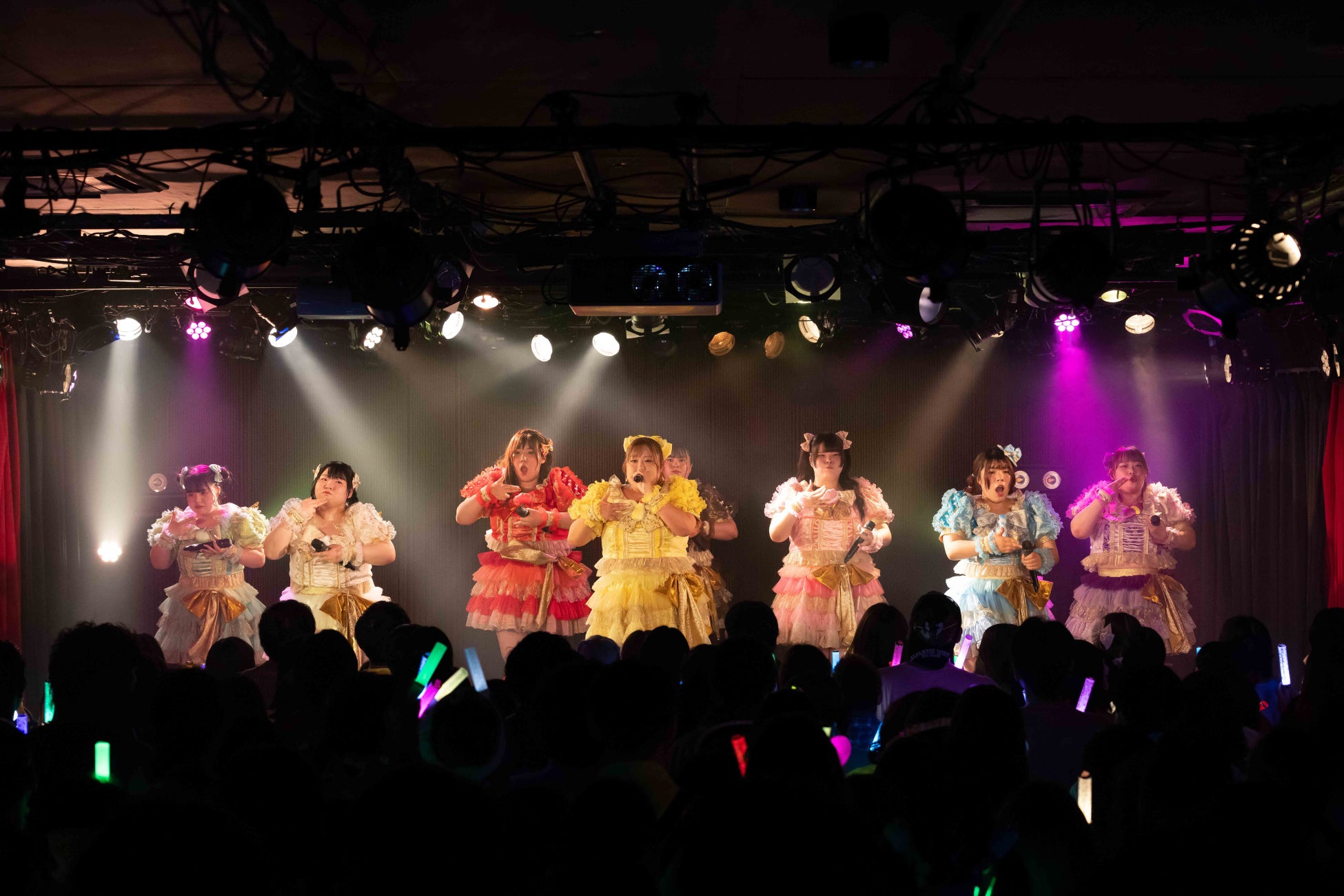 「ぐぅ〜!」と一際大きなお腹の音が鳴ったのかと思えば、実は『デリシャスDays』のイントロ。おデブ女子のいっぱい食べて幸せな毎日を歌ったアップテンポなナンバー。 続けて、「Summer Dive!!!』、『ナンデモ☆カンデモ』を畳みかけるように博テ会場を盛り上げた。
