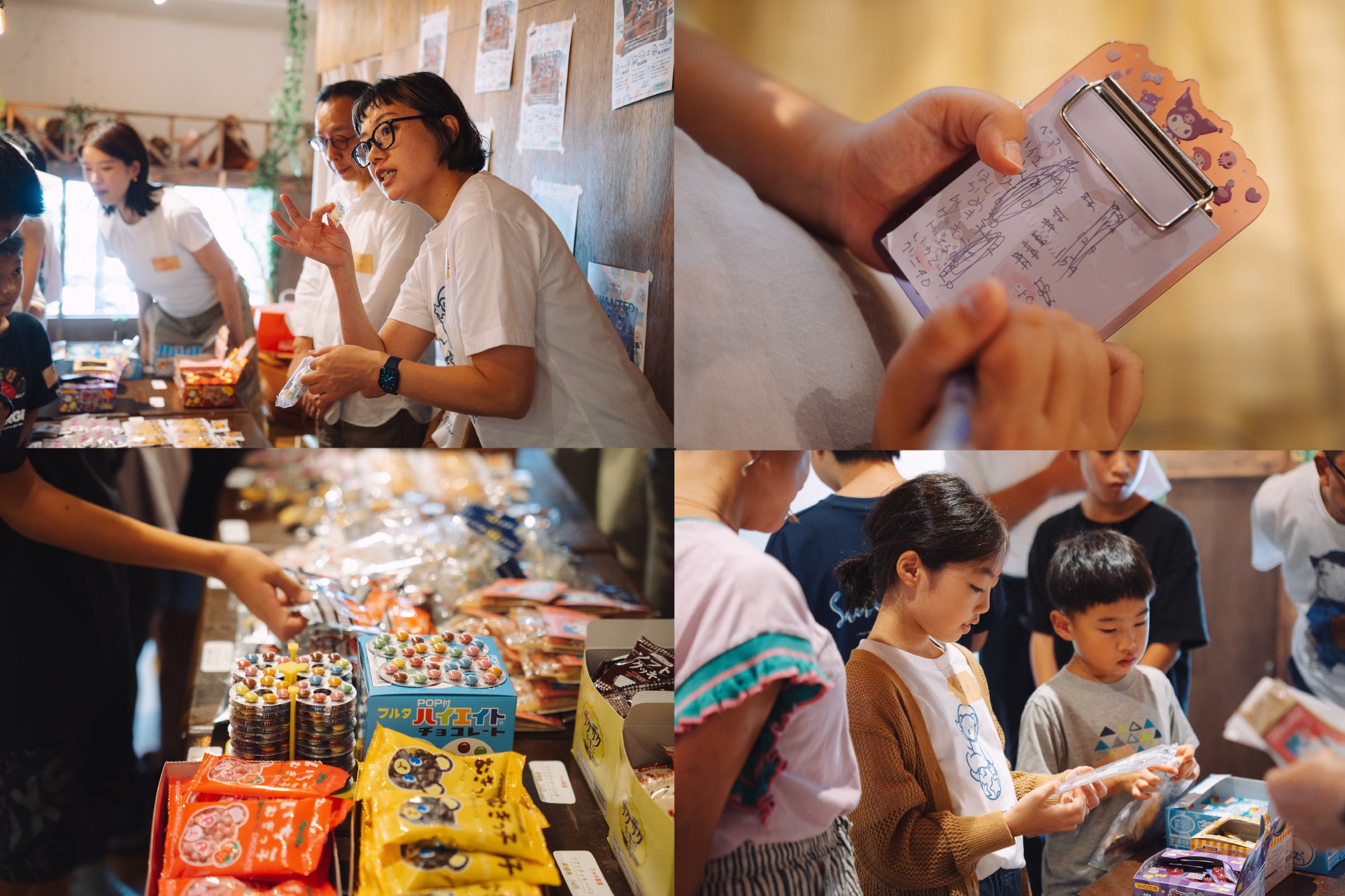 後半のお菓子セット作りは、ただ好きなお菓子を詰めるだけではなく、“本気で売れる商品を開発する”という意気込みで取り組みました。日頃食べているお菓子の裏側には、流通や価格の仕組みがあることを学びながら、卸価格をもとに利益を計算。各社のお菓子を食べ比べながら、真剣に利益を考える姿はもう立派な商人です。サポート役として地域の高校生も加わり、子どもも大人も一緒になってものづくりを楽しみました。販売で得られた利益は次の活動に活用し、地域を巻き込んだ取り組みを継続していきます。