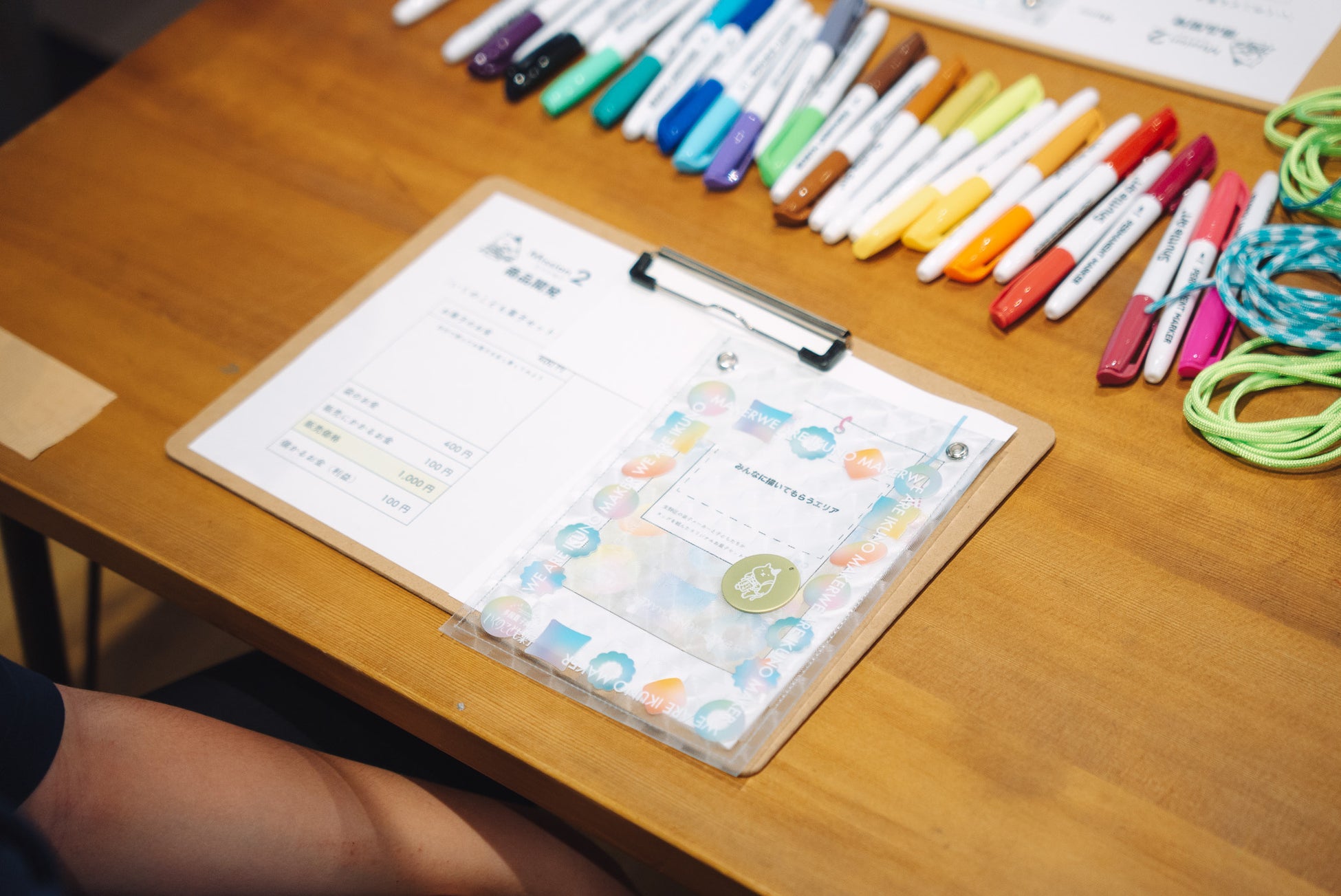 子どもたちの選んだお菓子は、今回の企画のために作られたオリジナルのサコッシュに詰め込みます。