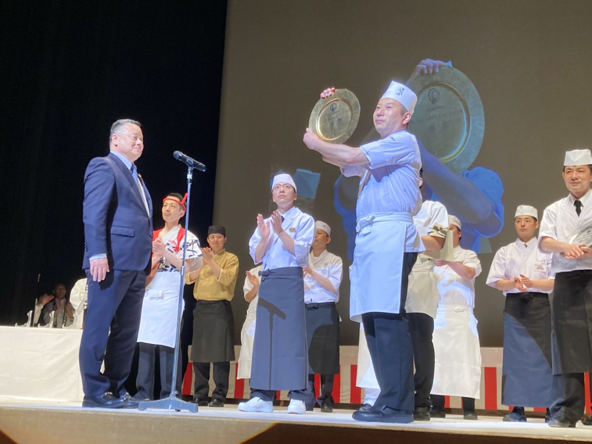 弊社・ネオエモーションでは、厳正なる社内選考会を経て代表を選出。第1回・第2回大会にも出場経験がある矢後潤一郎(「まぐろ問屋 三浦三崎港 恵み」渋谷ヒカリエ店・副店長)が代表選手として出場をし、見事、優勝トロフィーを獲得いたしました。