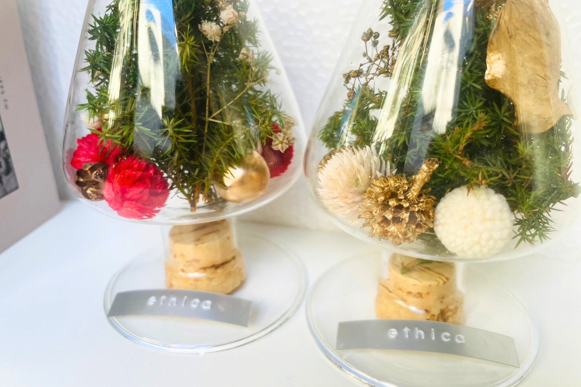 ただ実際はエシカル、サステナブル、SDGsの言葉を聞いたときに「なんとなく大切なことだと知っているけれど何からはじめたらいいのかわからない」という方も多いのではないでしょうか。そのような方が気軽に当社の商品を手に取り、「場所をとらずクリスマス感を楽しみたい」「クリスマスツリーは飾りたいけど飾り付けや片付けが億劫」という気持ちに寄り添った商品を制作することで、エシカルを意識しなくても自然とエシカル消費ができるようになるのではと考えました。特に普段はエシカルフラワーを使った商品の企画や空間装飾を行っているためお花を通してのアプローチになりますが、クリスマスという大勢が楽しめるイベントにあわせた商品を生み出すことで気軽にエシカル消費に繋がればと思っております。今後も、当社の商品によってみなさまの日常に彩りが生まれ、その結果、社会や地球に優しい取り組みにつながるような商品を作り続けます。