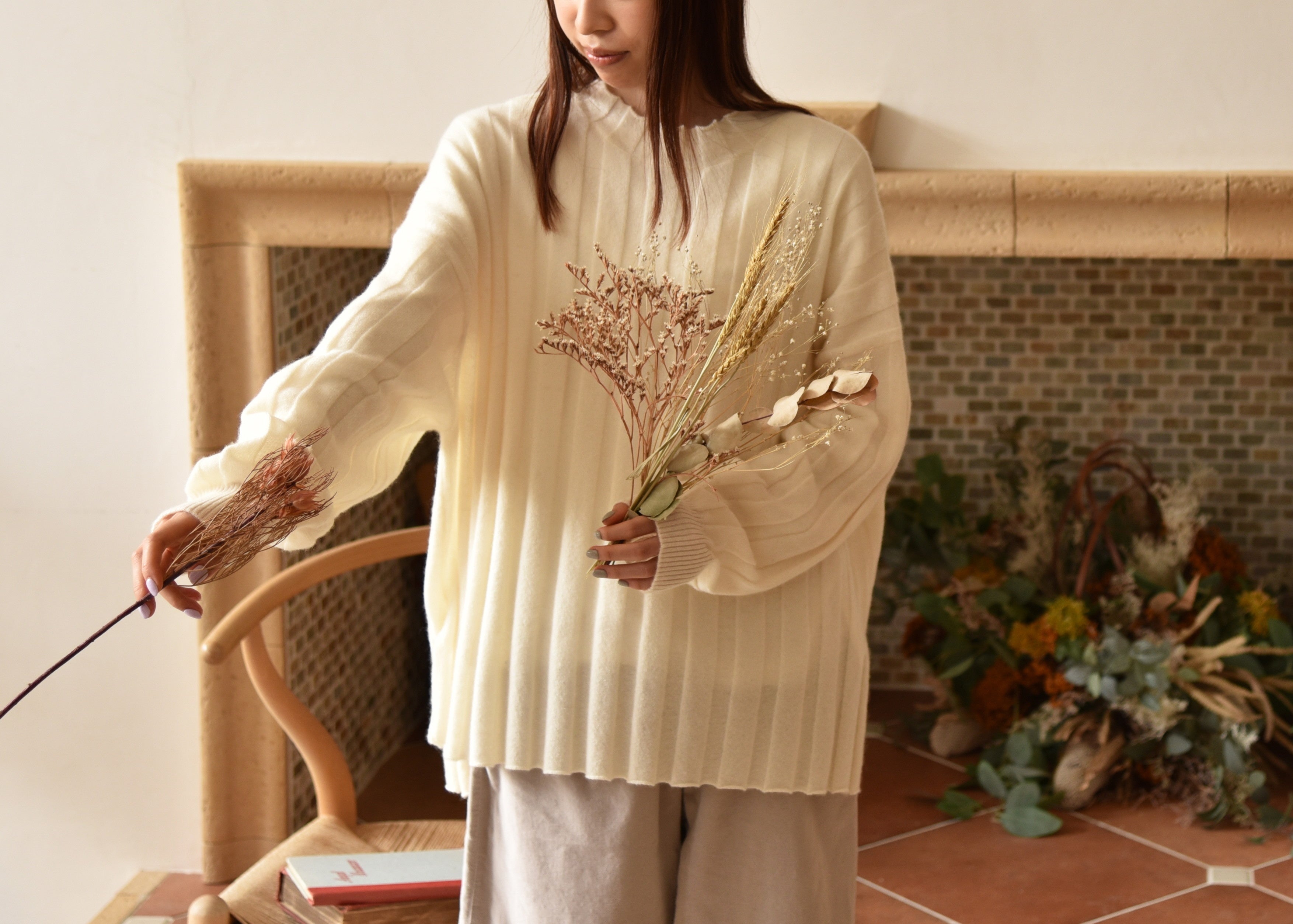 カシミヤの中でも高品質なモンゴル産のものを選び丁寧に仕立てた秋冬のウェアを取りそろえました。