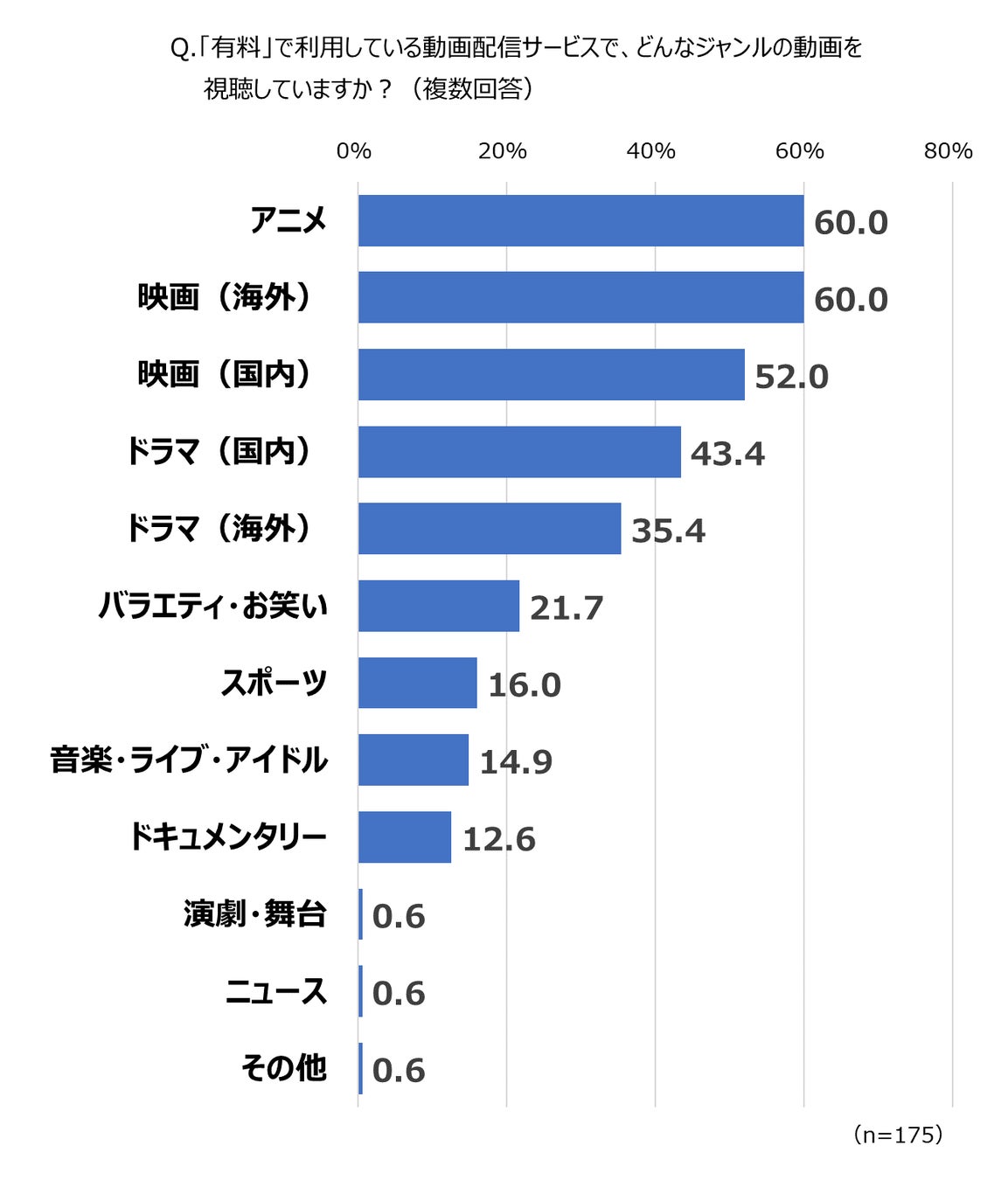 有料動画配信サービス利用者の6割が「アニメ/海外映画を視聴」と回答
