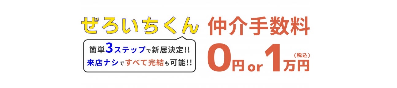 「ぜろいちくん」では、大家さんから広告料が支払われる物件は仲介手数料0円とし、それ以外の物件では1万円をいただく仕組みになっています。1万円は、内見や契約の手続きなどで発生する、最低限の仕事に対する報酬分です。そのため「ぜろいちくん」では、仲介手数料0円か1万円で賃貸物件のご紹介が実現できます。