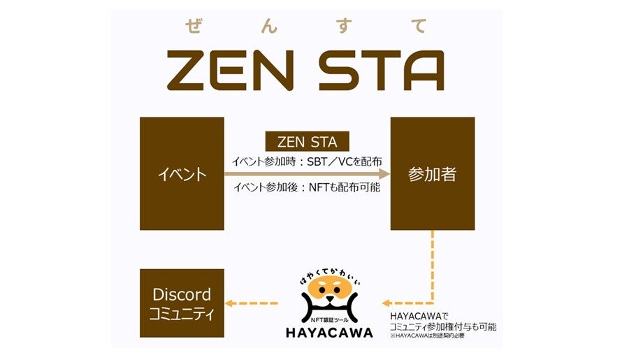 「ZEN STA」は、イベントに参加した証明を主催者側から参加者へSBTやVCなどのデジタル参加証としてワンタイムQRコードやURLから簡単に配布し、イベントの回遊促進やイベント開催後のコミュニティ形成などのマーケティング活動を支援するサービスです。TOPPANグループが2023年4月より提供を開始した企業などのマーケティングにおけるNFT活用を支援する「エンタープライズ向けNFT認証ソリューション」の第2弾として、2023年10月17日よりイベントやエンターテイメント業界を中心に販売を開始します。