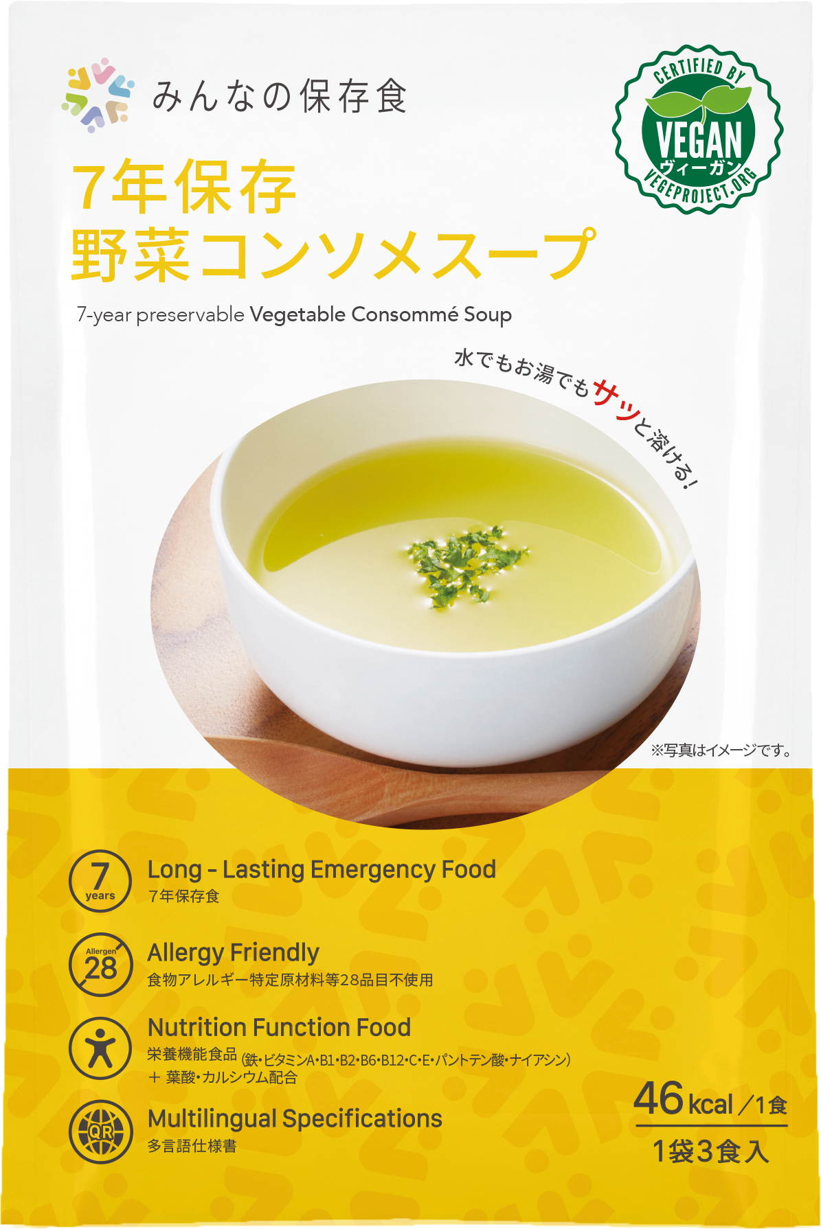【新発売】みんなの保存食®「7年保存野菜コンソメスープ」
