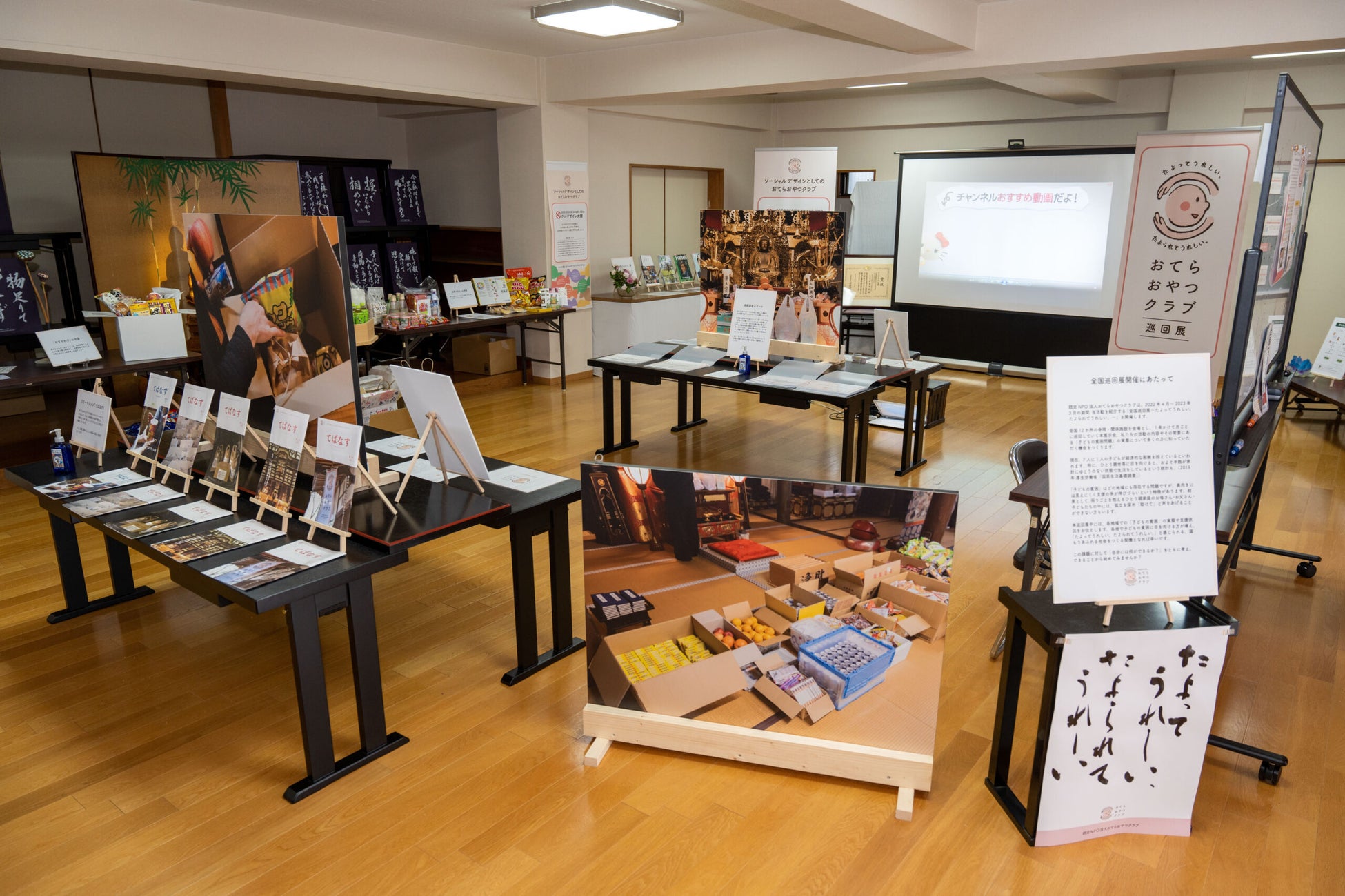 認定NPO法人おてらおやつクラブ(https://otera-oyatsu.club/)は2022年度の啓発事業の一環として、当活動を紹介する「全国巡回展~たよってうれしい、たよられてうれしい。~」を開催しています。巡回展の詳細はこちら(https://otera-oyatsu.club/2022/04/traveling-exhibition/)。