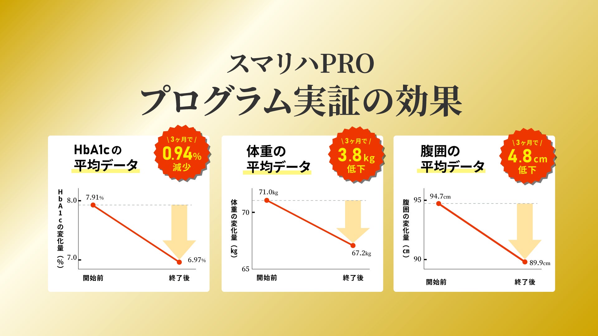 実績として、たった3ヶ月でHbA1cを平均0.94%下げる結果を達成し、この取り組みに対して糖尿病専門医師からも高い評価をいただいております。