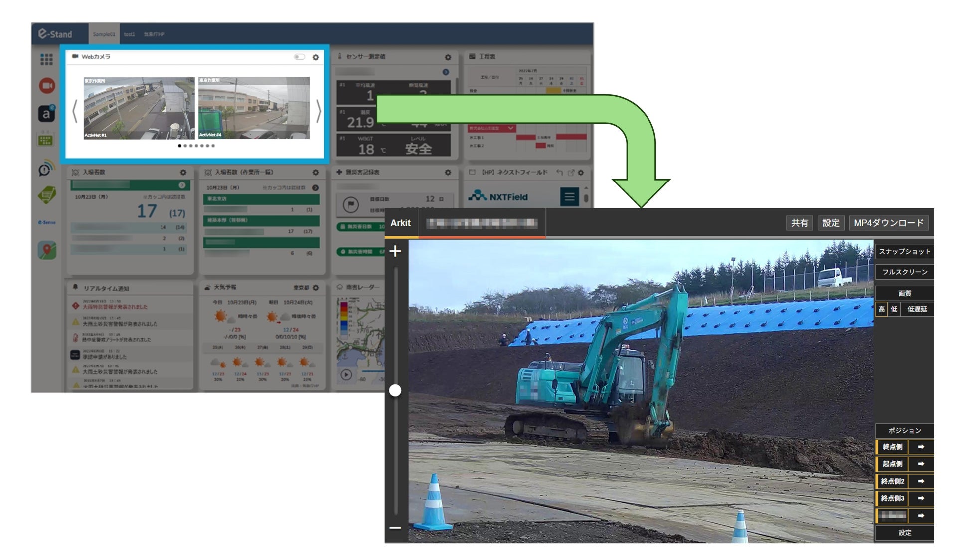 建設現場向けカメラシステム「ArkitCam」ならびにAI映像システム、建設ダッシュボードサービス「e-Stand」とシステム連携を開始