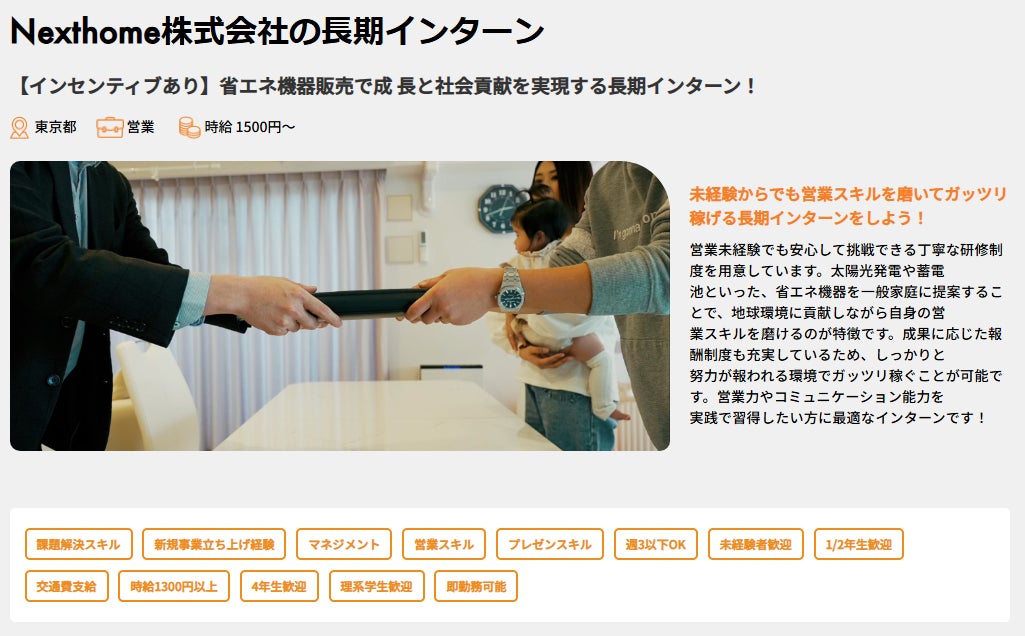 このたび、Nexthome株式会社が学生と企業をつなぐ長期インターン求人媒体「ココシロインターン」にて、新たに営業職のインターンシップ求人を掲載されました。