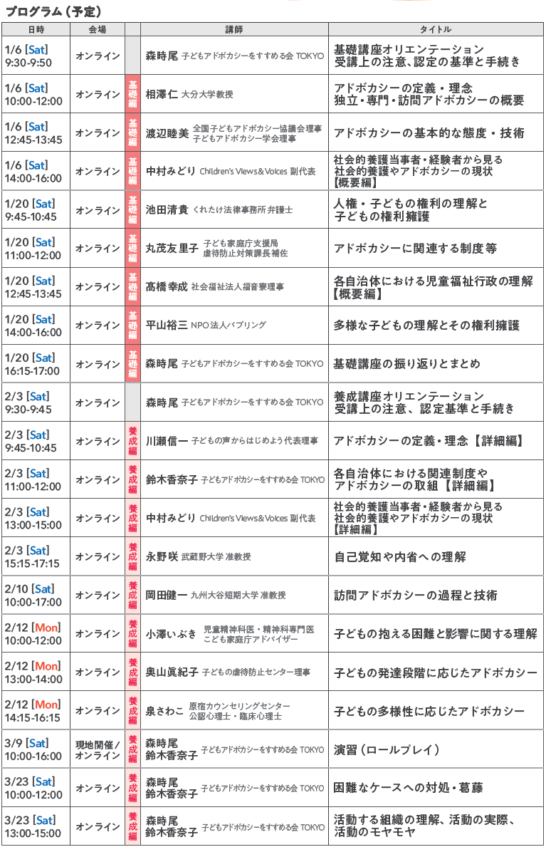 共催:NPO法人子どもアドボカシーをすすめる会TOKYO(URL:https://www.childadvocacy.jp/)
