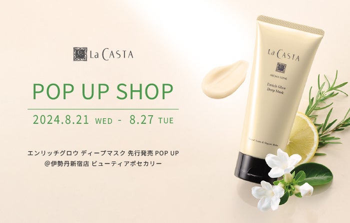 8月21日(水)~ 伊勢丹新宿店 本館地下2階 ビューティアポセカリーにて、「エンリッチグロウ ディープマスク」を先行発売。発売を記念してラ・カスタの世界観を体験できるPOP UP SHOPを開催。