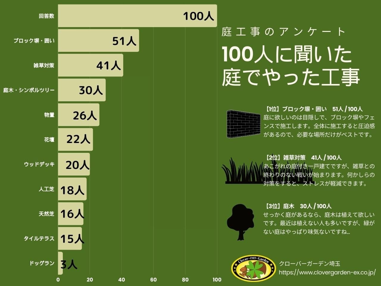 庭工事を経験した100人の20代から70代までの幅広い年代の人々を対象にしました。
